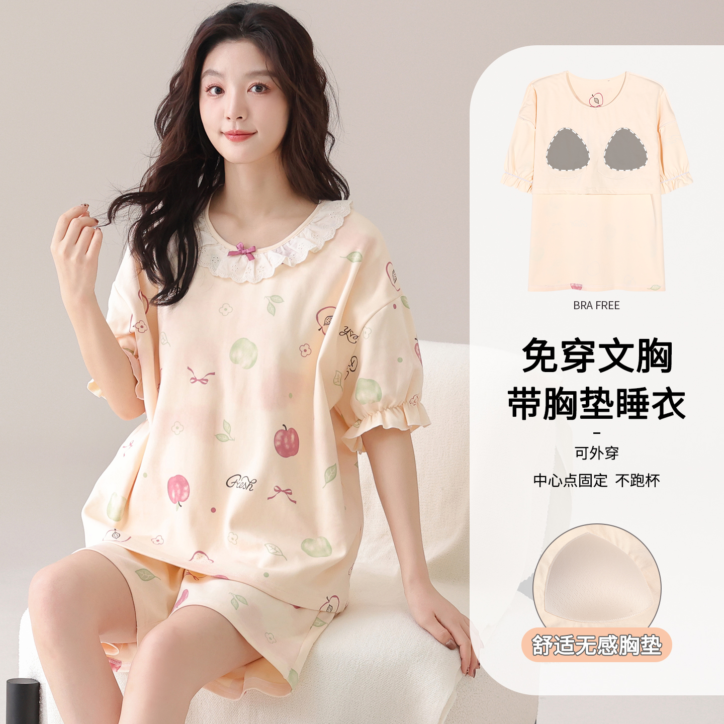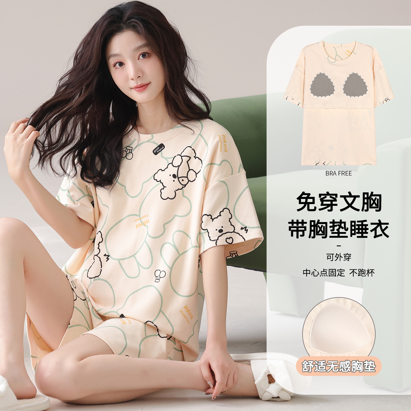 2025新款 套装 卡通腊肠狗家居服 长袖 猫人纯棉睡衣女士带胸垫春秋款