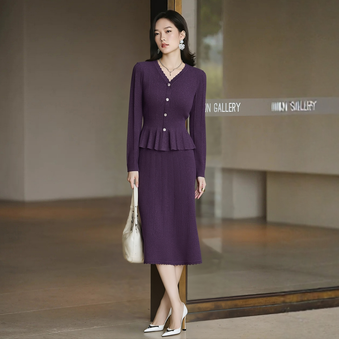 针织衫 条纹短袖 长袖 开衫 毛衣外套 RARN2025秋装 两件套圆领修身 新款