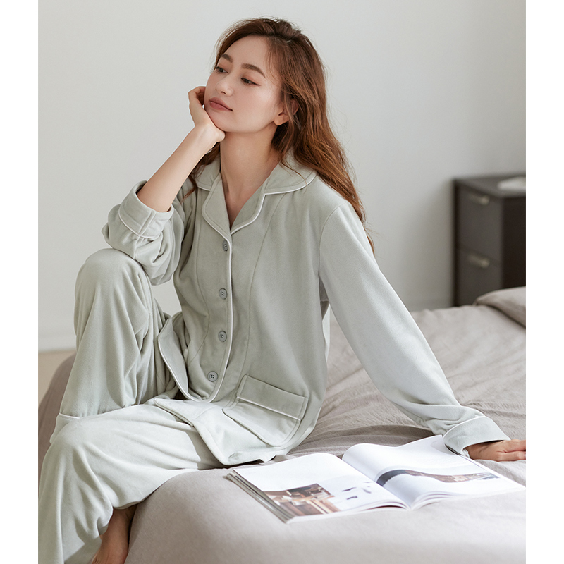 海岛绒可外穿家居服 简约薄款 睡衣女秋冬季 保暖珊瑚绒女士睡衣套装
