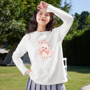 独特漂亮打底衫 班尼路粉色纯棉长袖 新款 内搭2025秋季 上衣H t恤女款