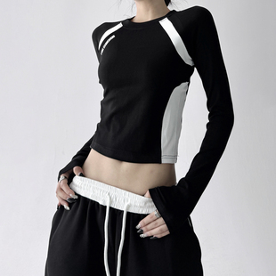 复古长袖 显瘦百搭打底衫 T恤女2025秋季 修身 上衣潮 新款 美式