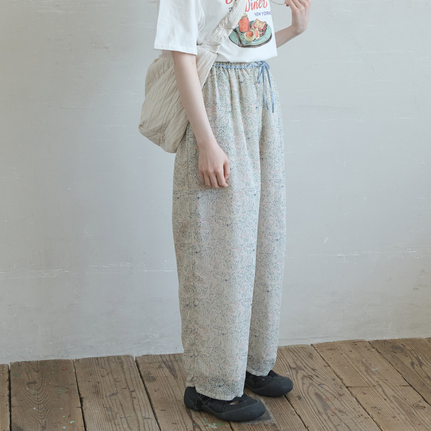 子2025早秋新款 CRISP日系穿搭碎花雪纺直筒裤 女松紧腰系带休闲裤