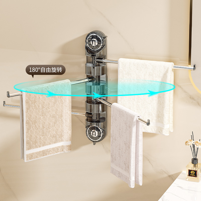 吸盘毛巾架卫生间免打孔旋转多杆置物架浴室挂架洗手间厕所毛巾杆