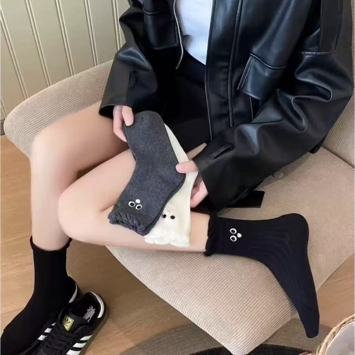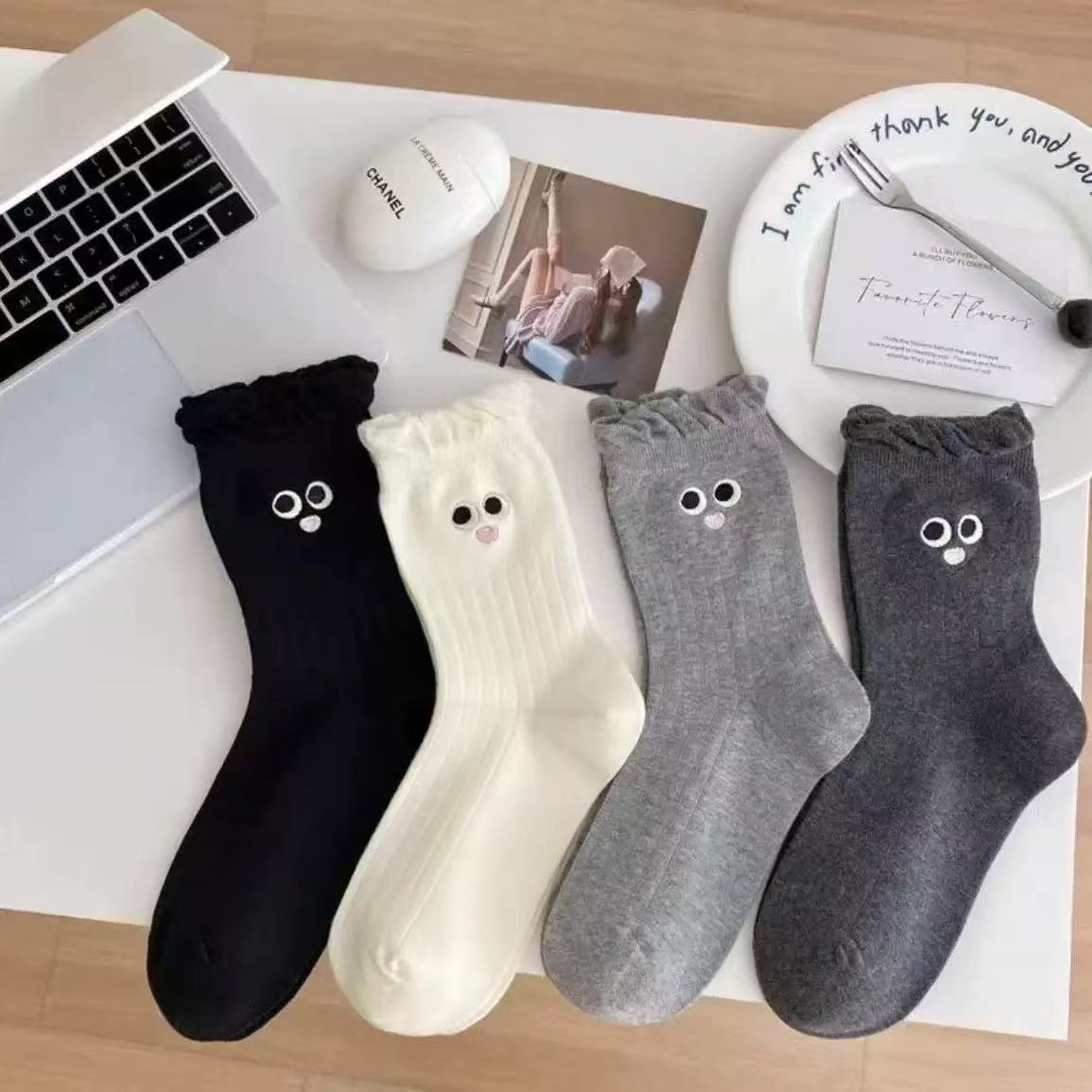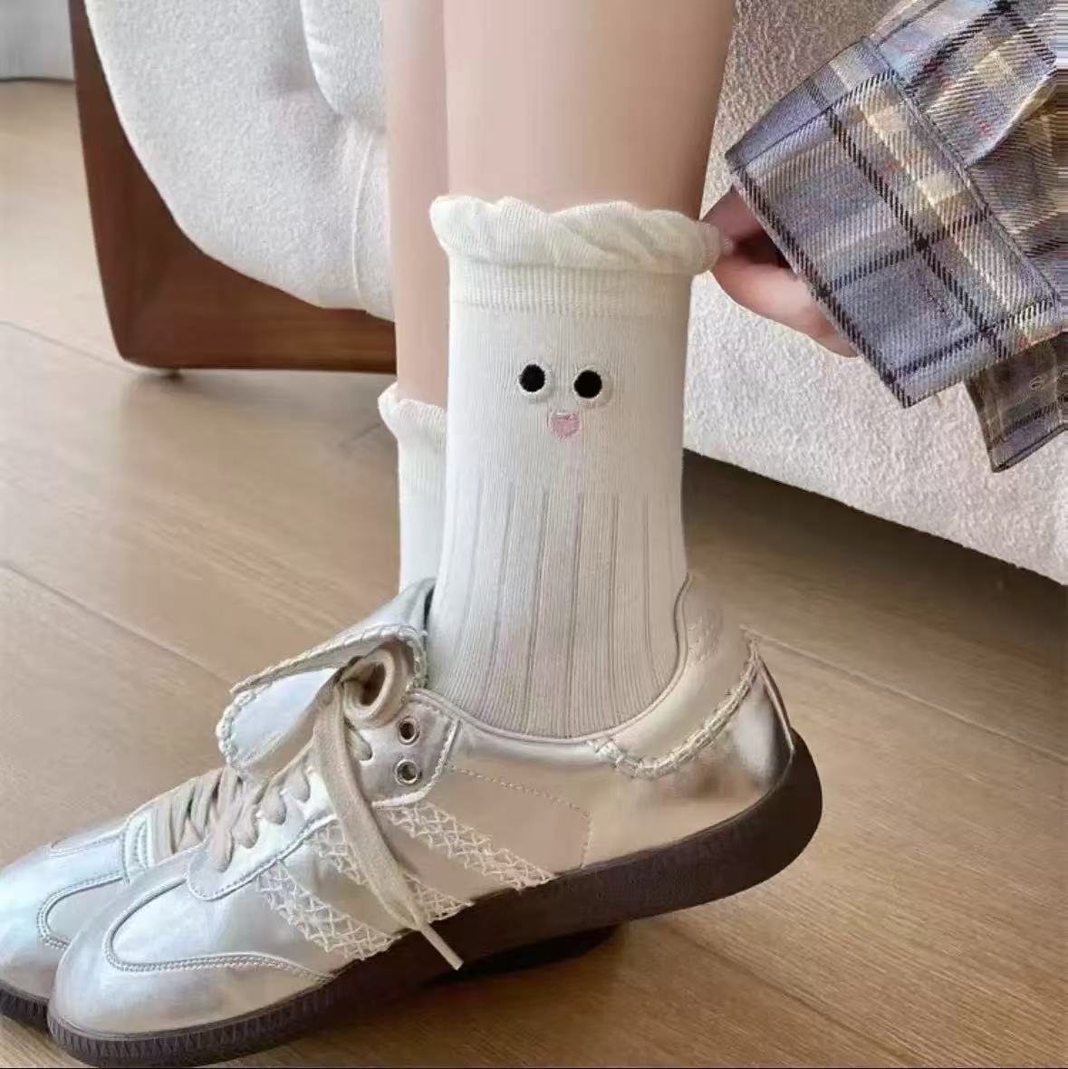 10双花边袜子女中筒棉秋冬季 长袜蝴蝶结优质 日系可爱刺绣无骨春款