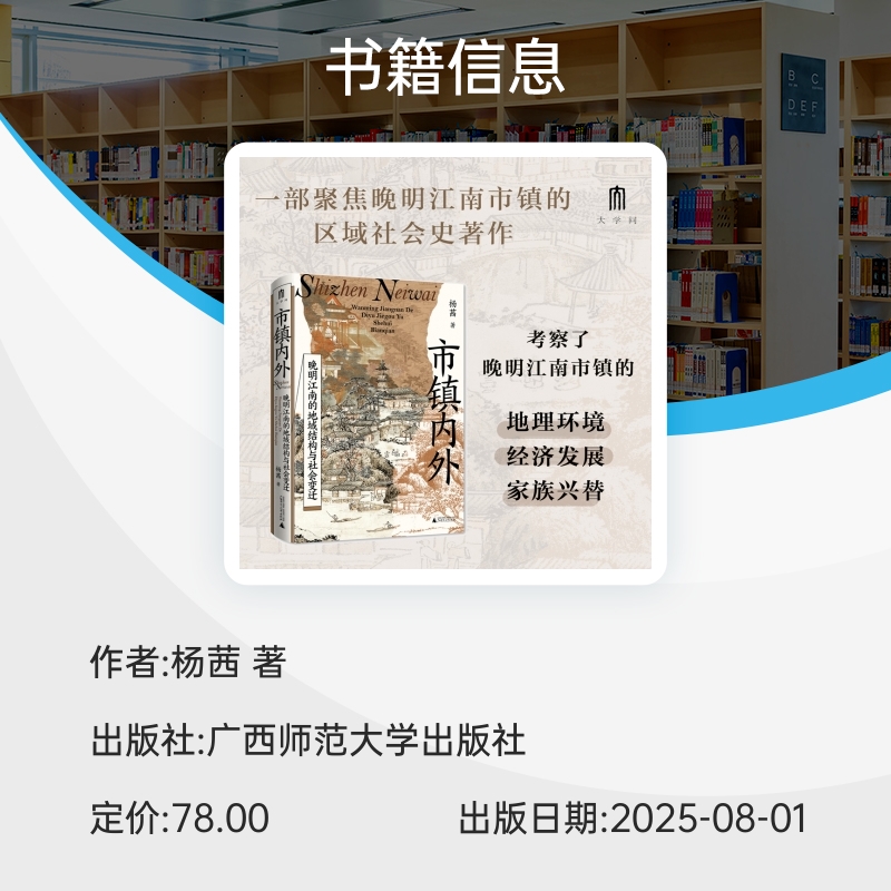 杨茜 著 广西师大 市镇内外:晚明江南 博库网 区域社会史著作书籍 地域结构与社会变迁 一部聚焦晚明江南市镇 正版 大学问系列