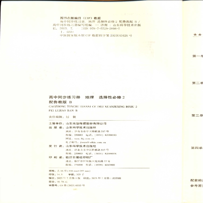社A版 2025地理选择性必修2二高中同步练习册配鲁教版 山东科学技术出版