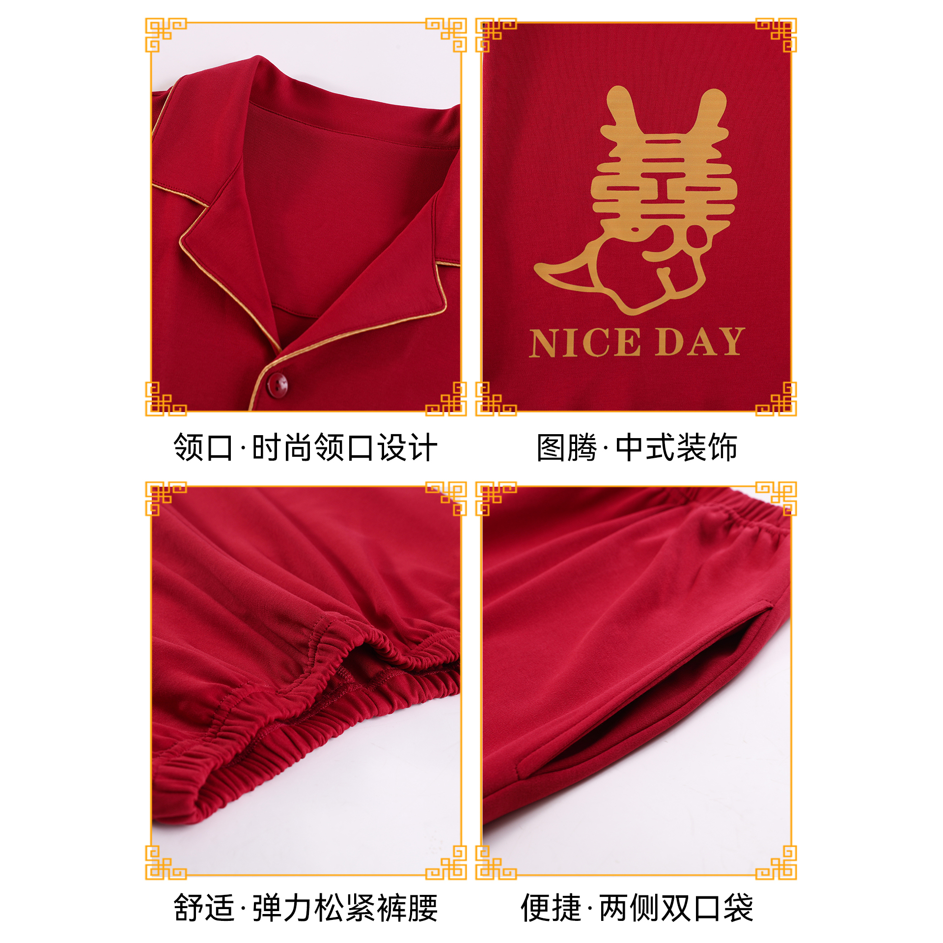 都市丽人睡衣结婚新婚情侣套装 高级感红色纯棉家居服 春秋2025新款
