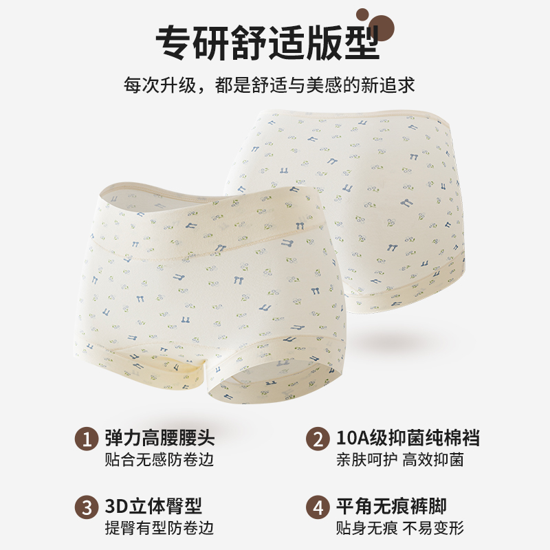 四角包臀女士高腰平角裤 猫人纯棉内裤 女A类婴儿棉抗菌裆2025新款