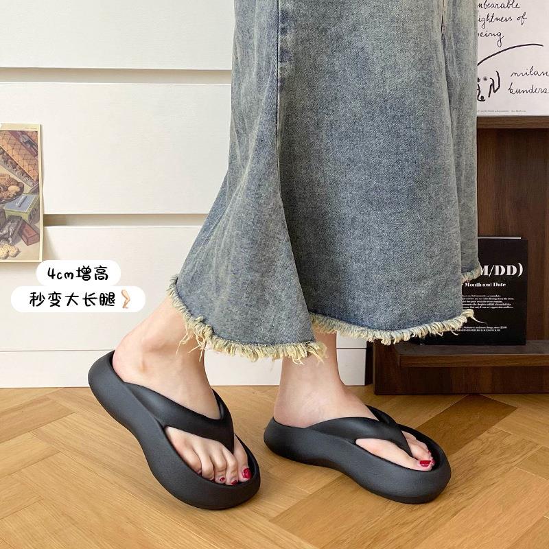 日本海边沙滩拖鞋 外穿踩屎感防水滑臭厚软底人字拖 增高凉拖女夏季