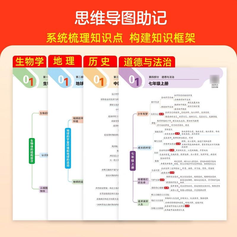 思维导图真题解析小四门会考冲刺知识点 高频考点速记手册 秒记小四门初中一本通 道德与法治历史生物地理