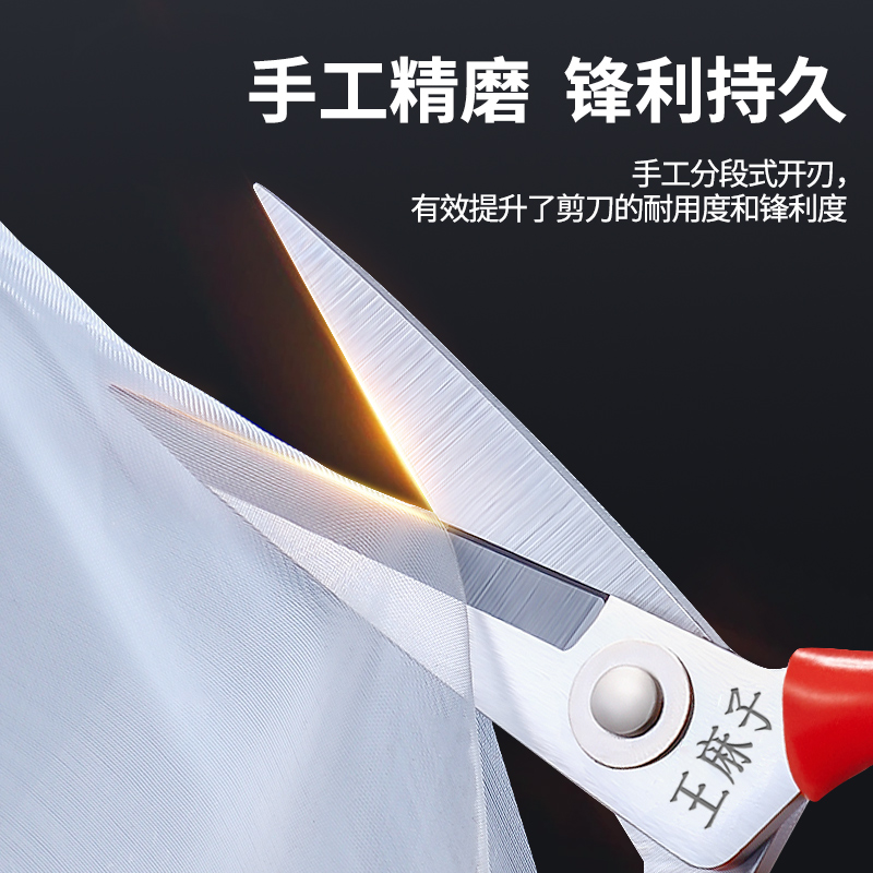 王麻子剪刀锋利家用老式 不锈钢工业缝纫专用大号裁缝尖头剪纸剪子