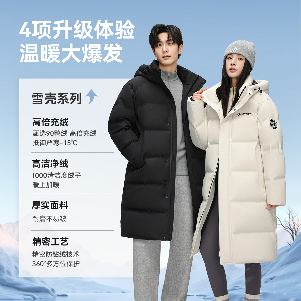 加厚保暖男女长款 雪中飞25冬新款 情侣羽绒服户外运动 雪壳系列
