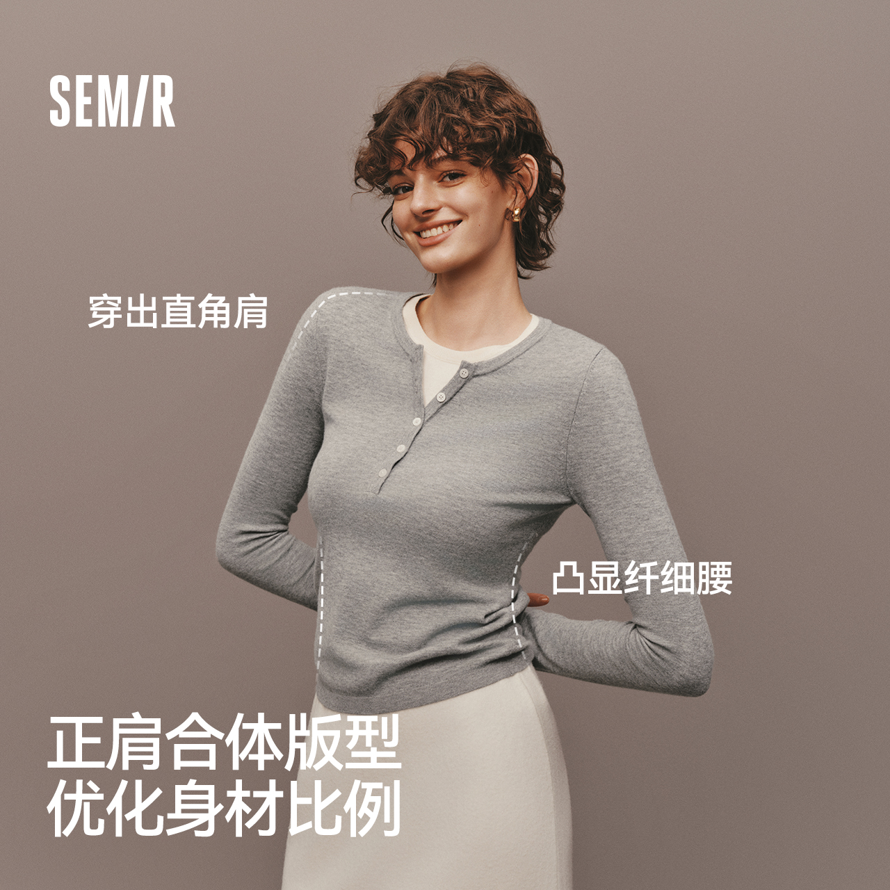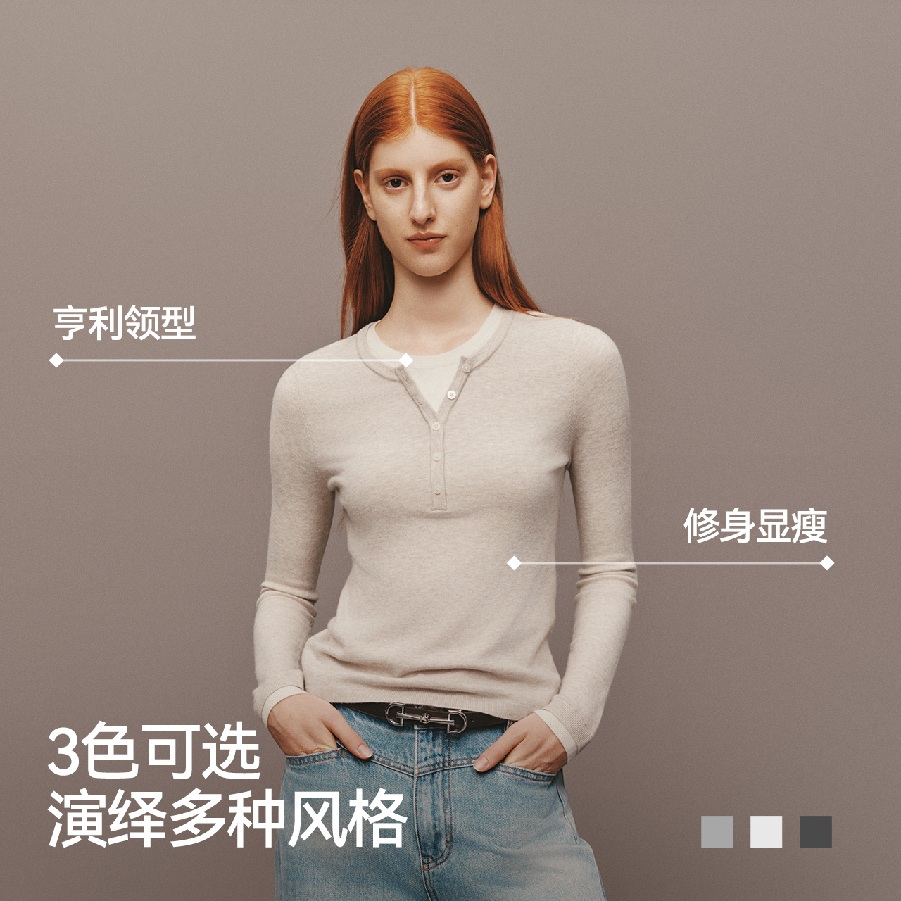 打底毛衫 2025新款 女冬亨利领含5.9%羊绒发热抗静电修身 森马针织衫