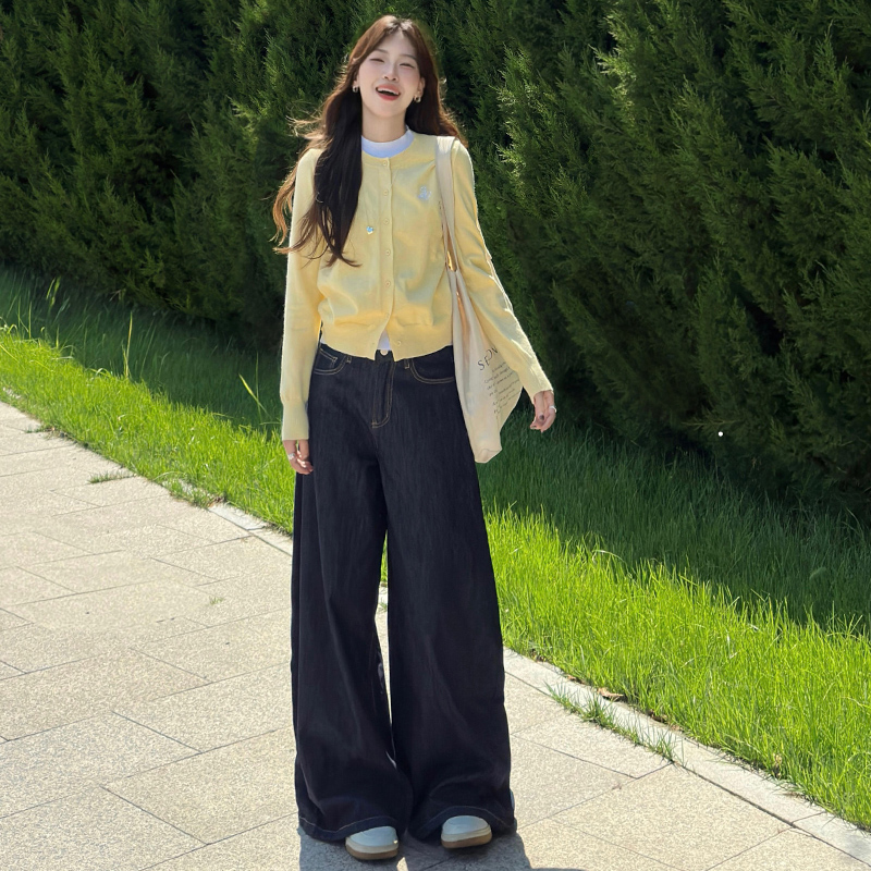 小个子高腰显瘦宽松休闲阔腿裤 2025新款 女春秋季 深蓝色直筒牛仔裤