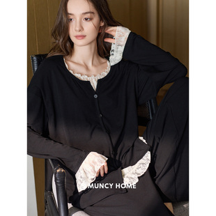 宽松显瘦可外穿 柔软棉睡衣女春秋假两件蕾丝长袖 曼系 气质拉满