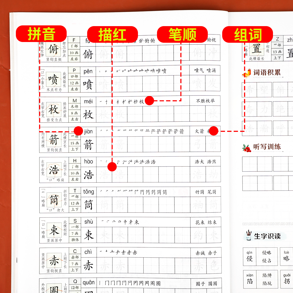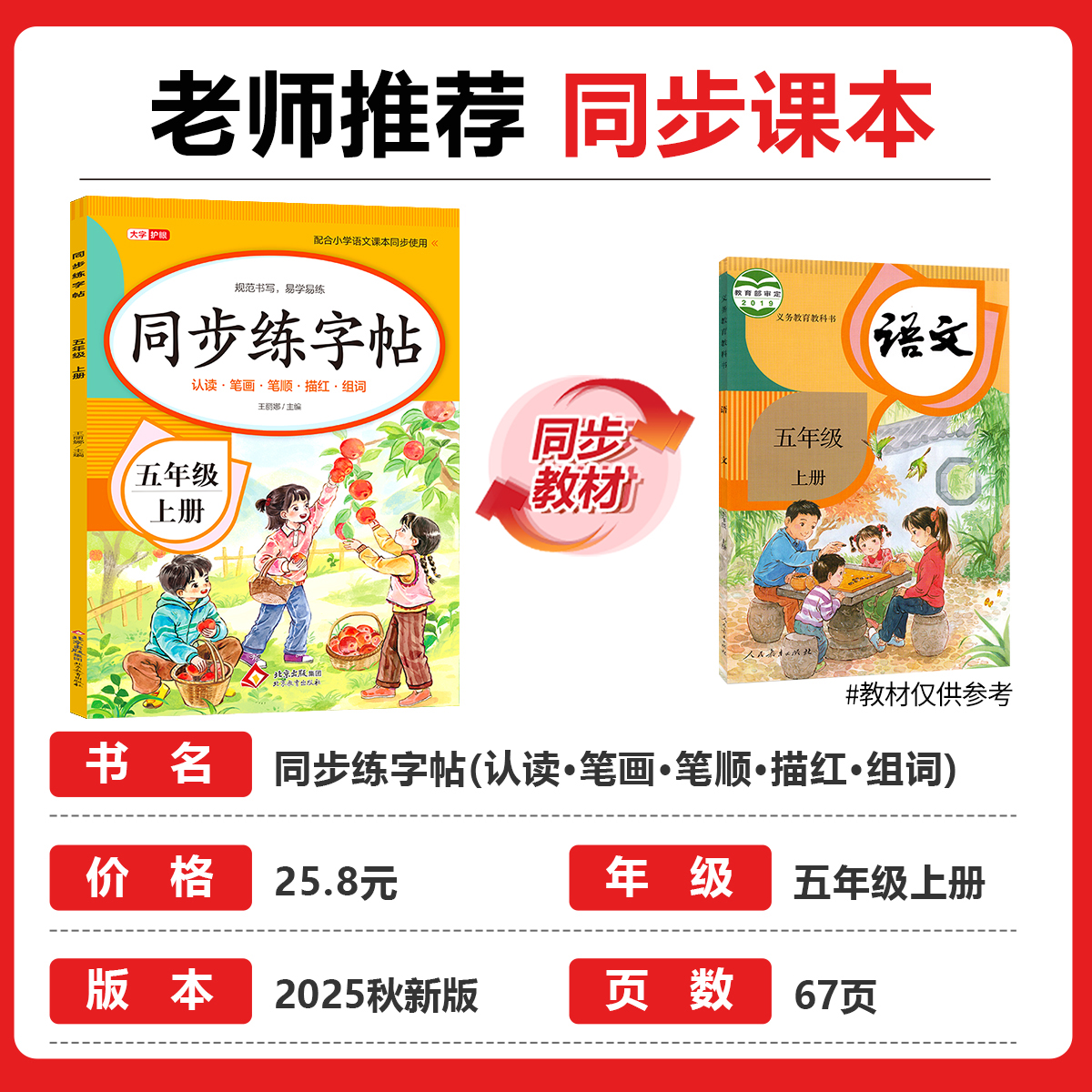 2025新版 同步教材小学生专用5年级语文生字预习同步字帖练字描红笔顺拼音组词练习RJ 小学五年级同步练字帖上册下册人教版