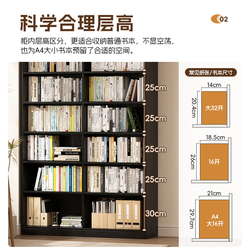单个书 放式 实木书架靠墙一体置物架高款 组合书柜客厅家用靠墙开
