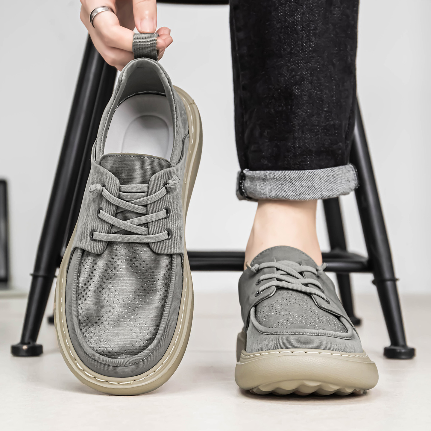 厚底单鞋 女鞋 松糕鞋 板鞋 诗歌兰2025新款 休闲运动鞋 真皮做旧小白鞋