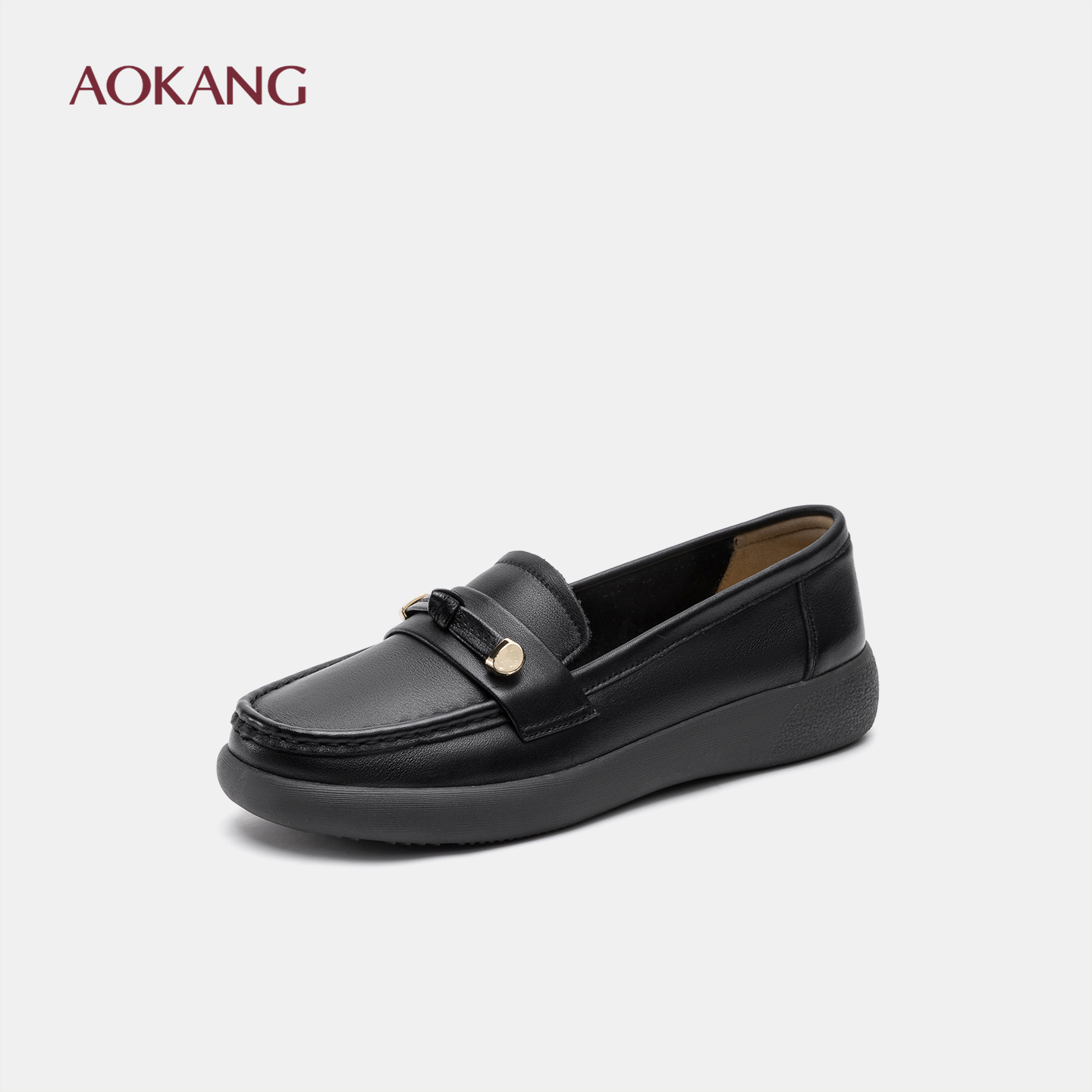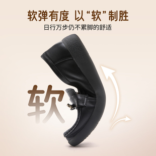 女鞋 一脚蹬舒适懒人鞋 2025秋季 真皮妈妈鞋 通勤平底 舒软鞋 奥康