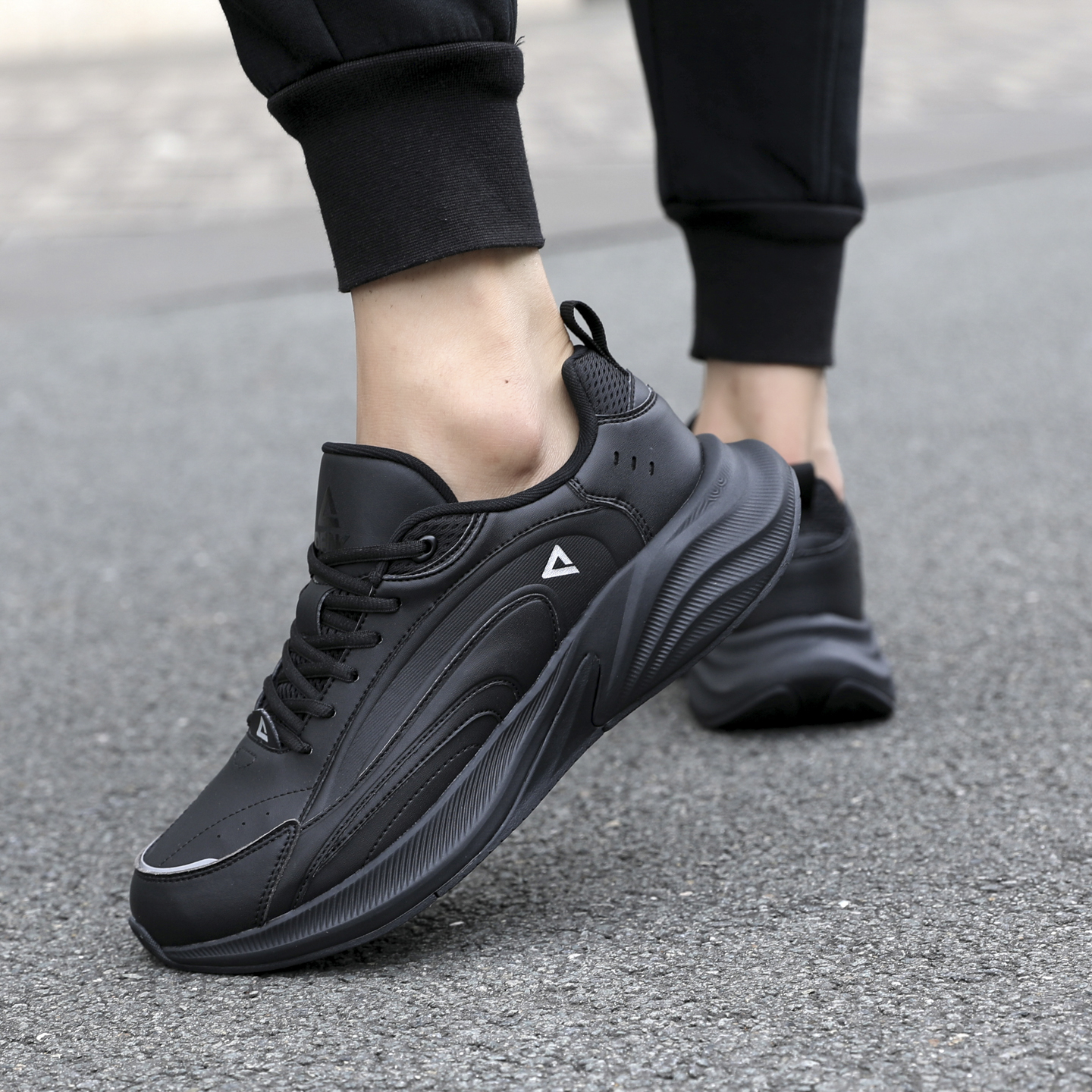 男鞋 休闲运动鞋 秋冬季 皮面黑色减震防滑跑鞋 新款 匹克态极跑步鞋