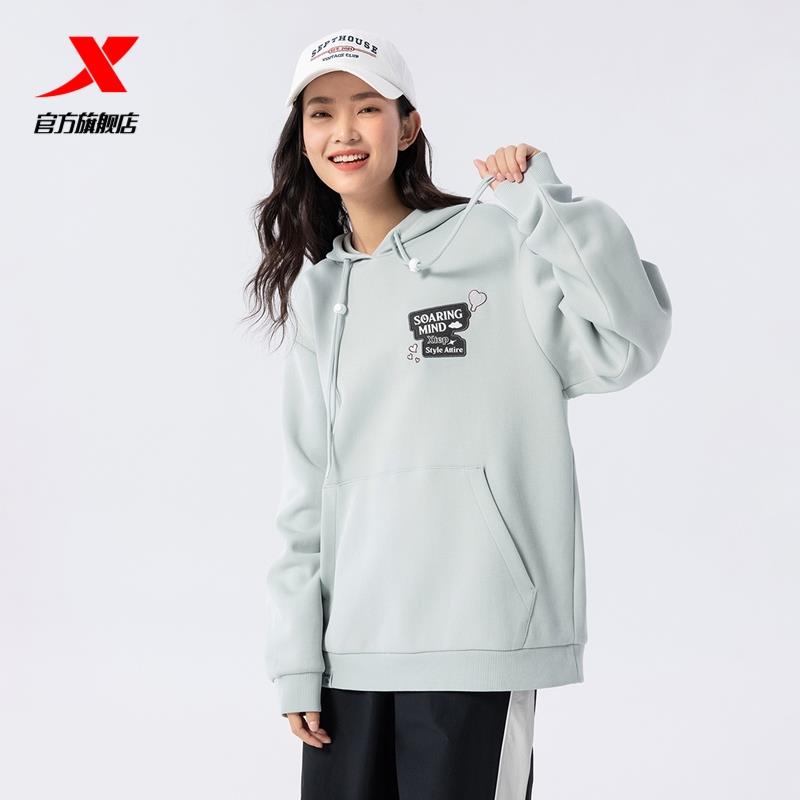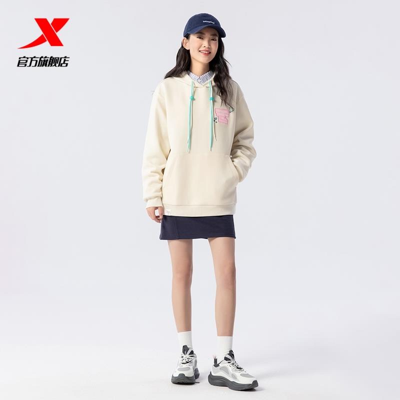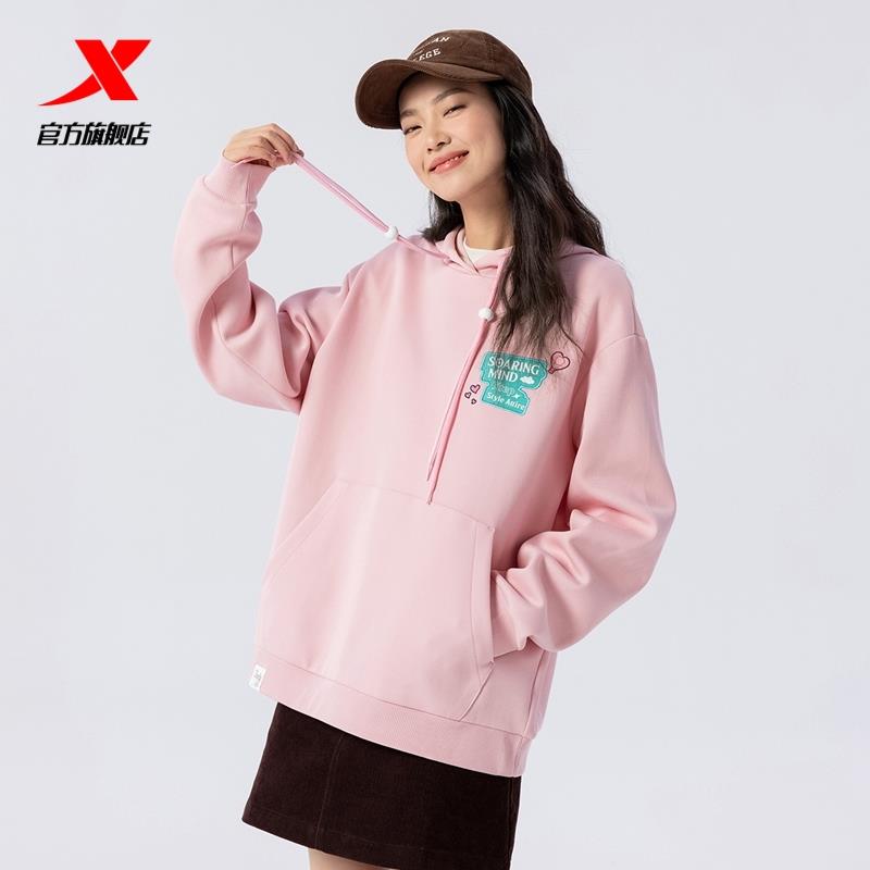 休闲时尚 特步连帽卫衣女2025新款 百搭宽松运动上衣女 商场同款