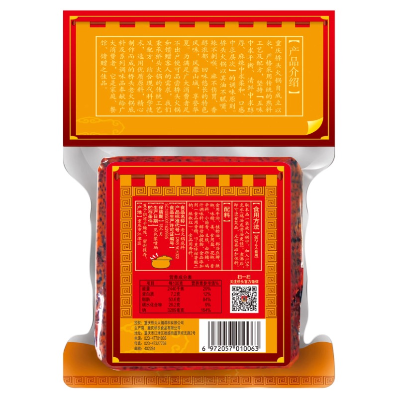 重庆桥头中辣特辣老火锅底料牛油正宗麻辣烫底料重庆味调料手工