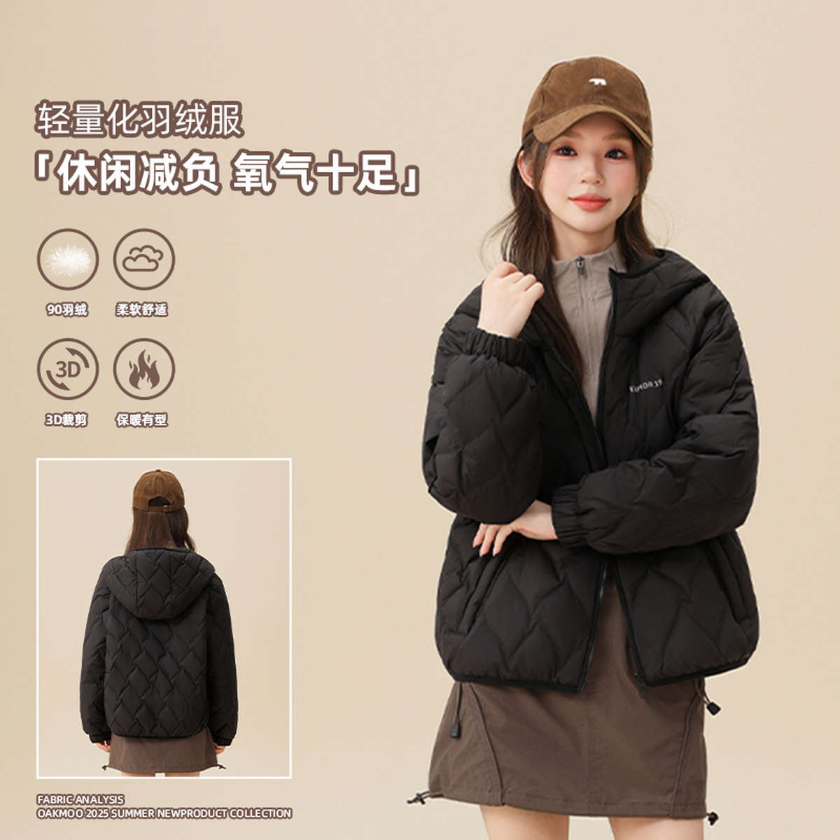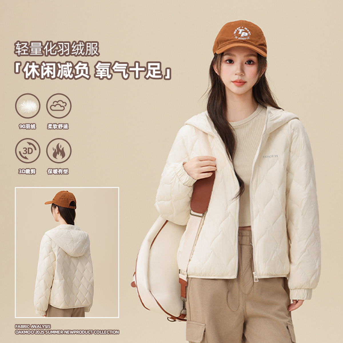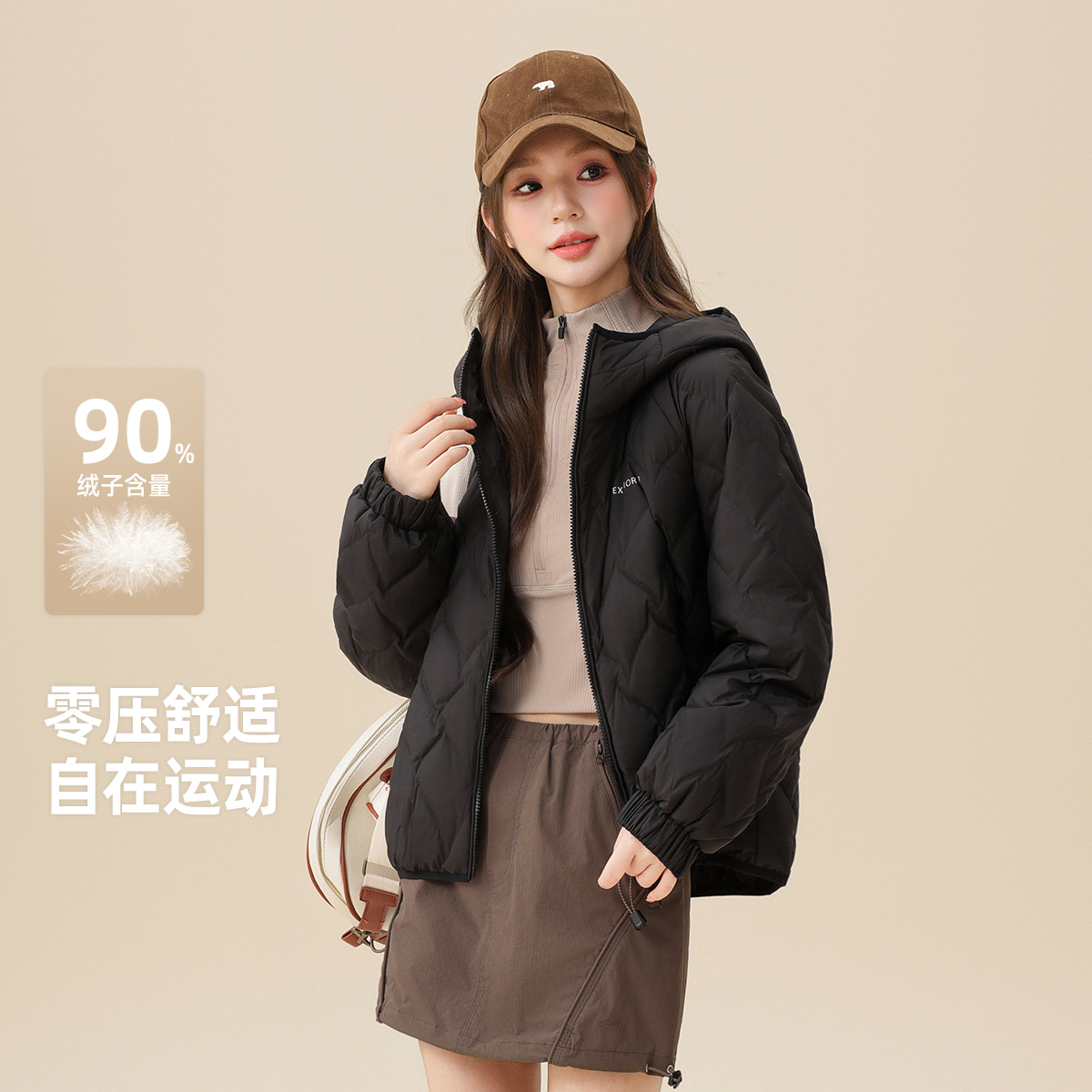 雪中飞2025冬新款 轻薄羽绒服女冬小个子韩系简约插肩宽松连帽保暖
