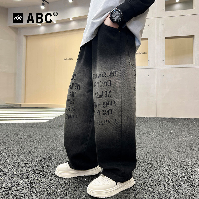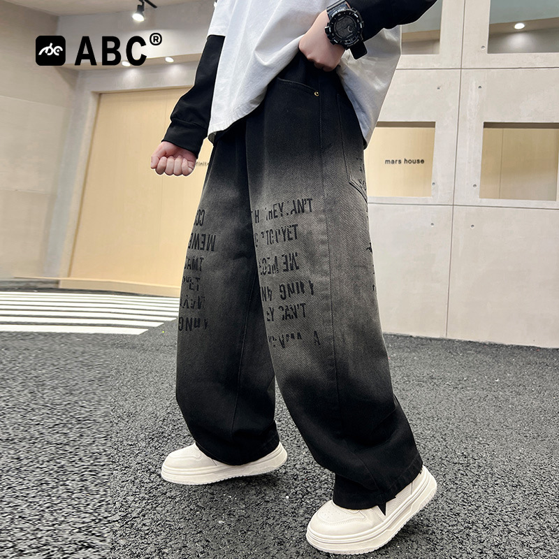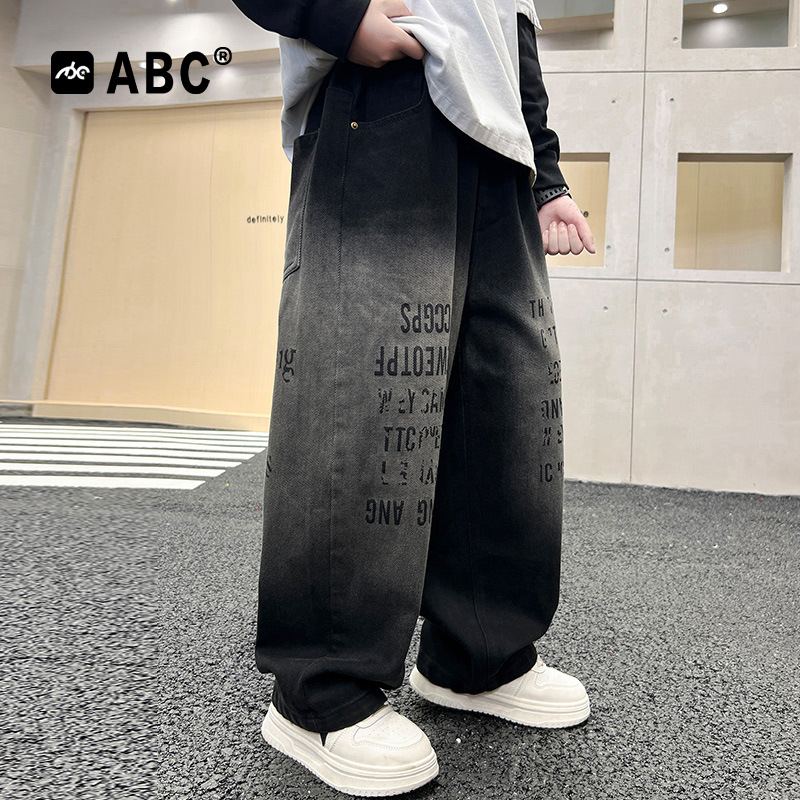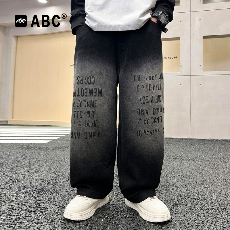 儿童裤 中大童男孩字母印花渐变阔腿裤 2025新款 ABC男童春秋牛仔裤