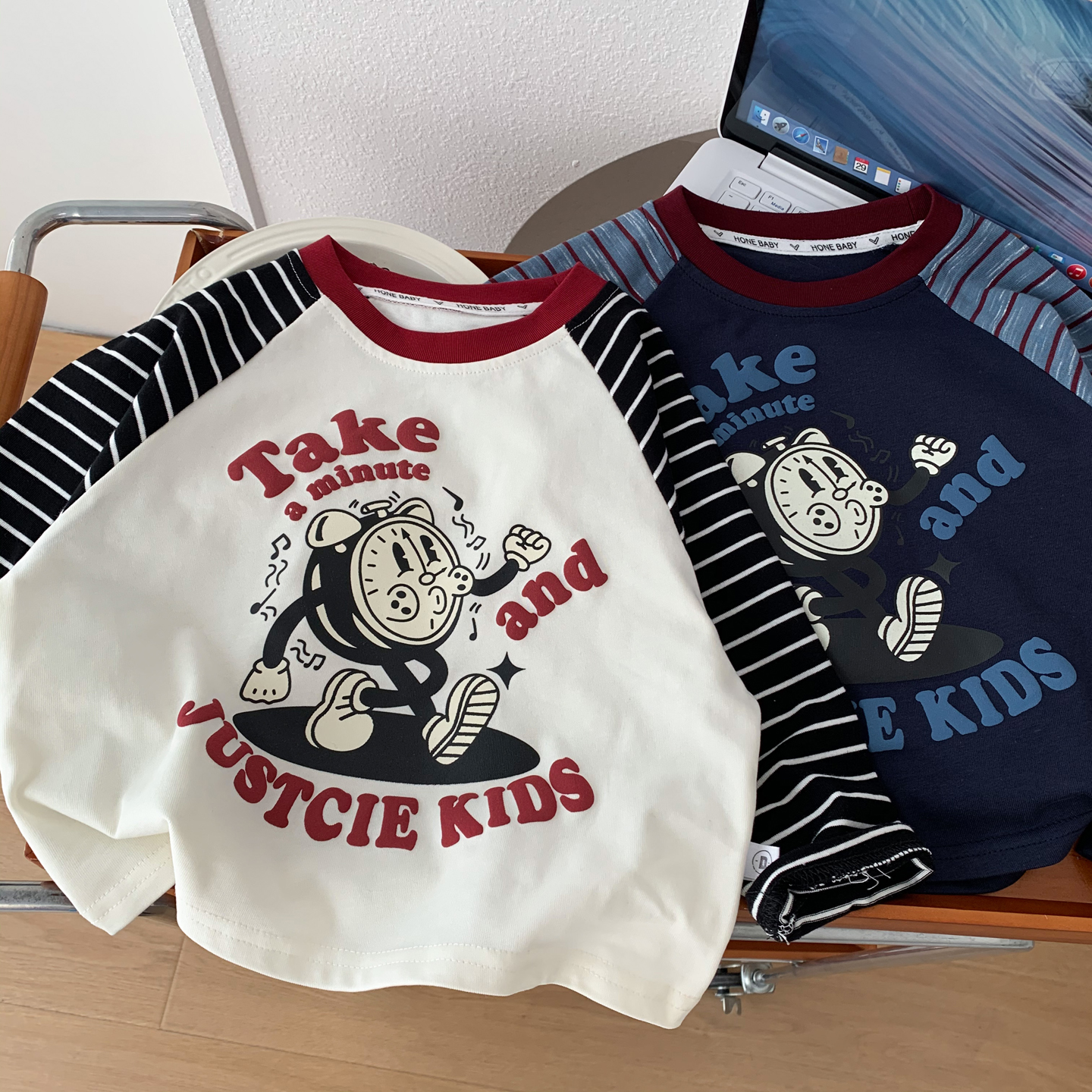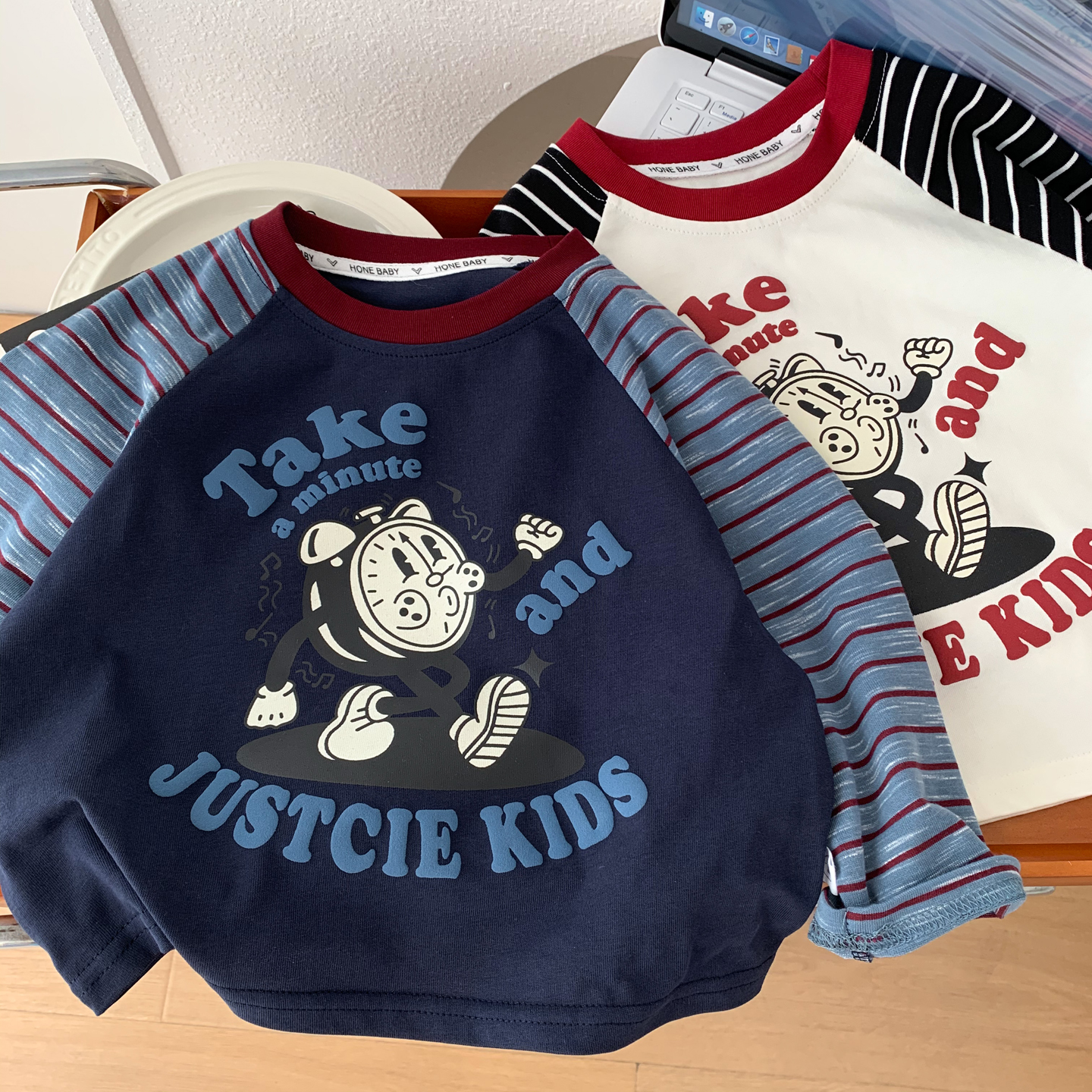 上衣儿童纯棉舒适打底衫 t恤2025春秋男孩洋气插肩袖 长袖 男童薄款