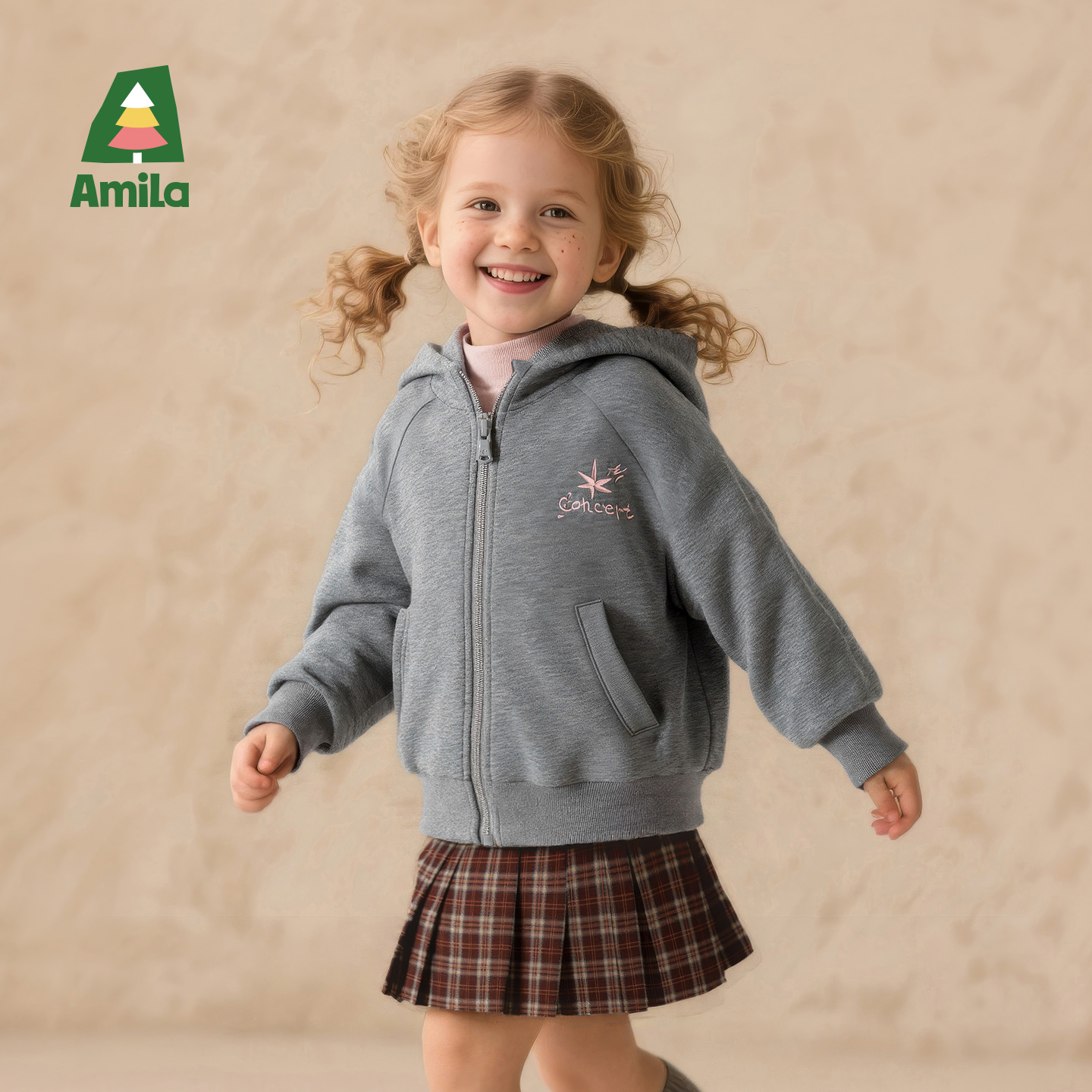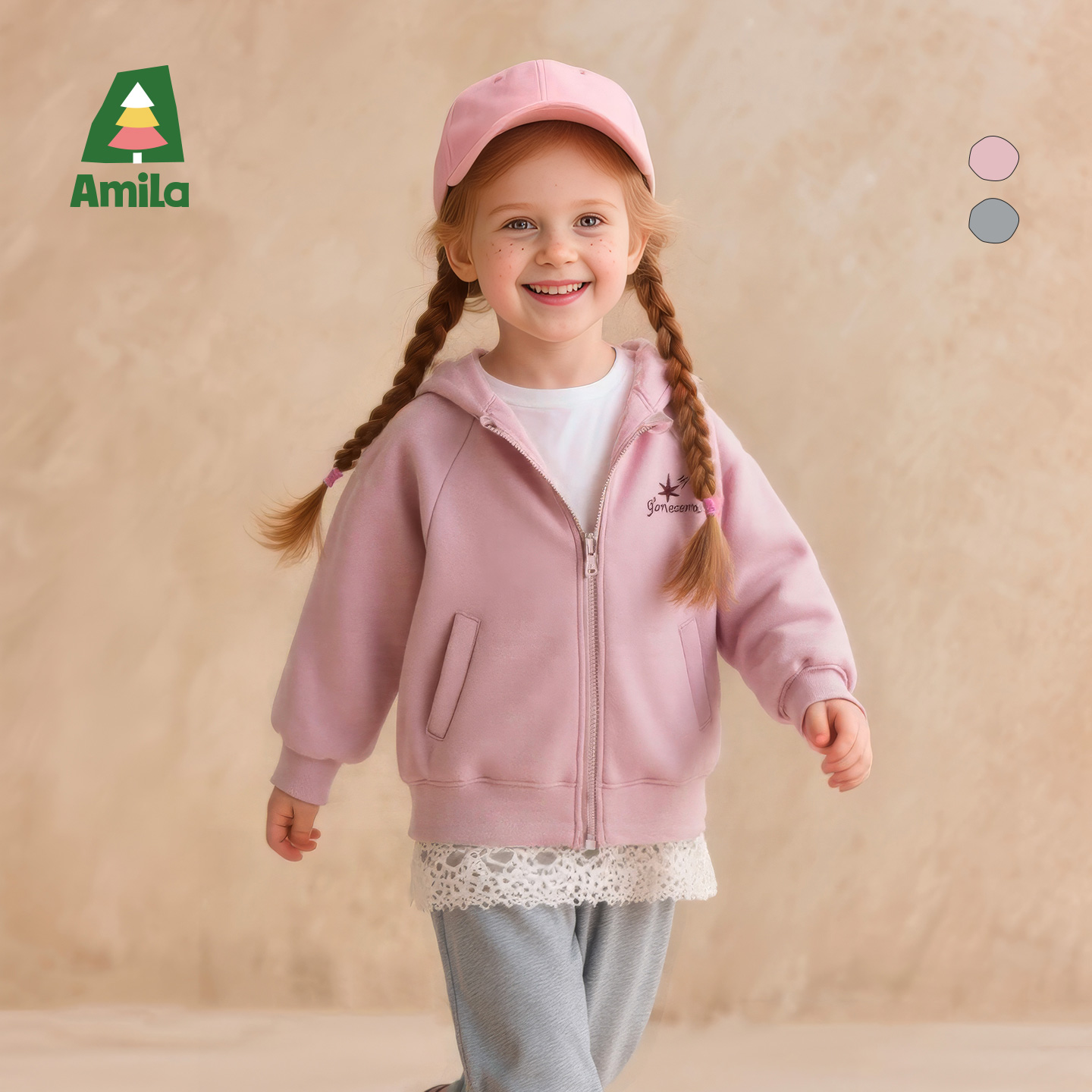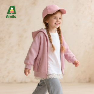 Amila女童卫衣外套2025新款 儿童连帽上衣潮 春秋洋气宽松宝宝开衫
