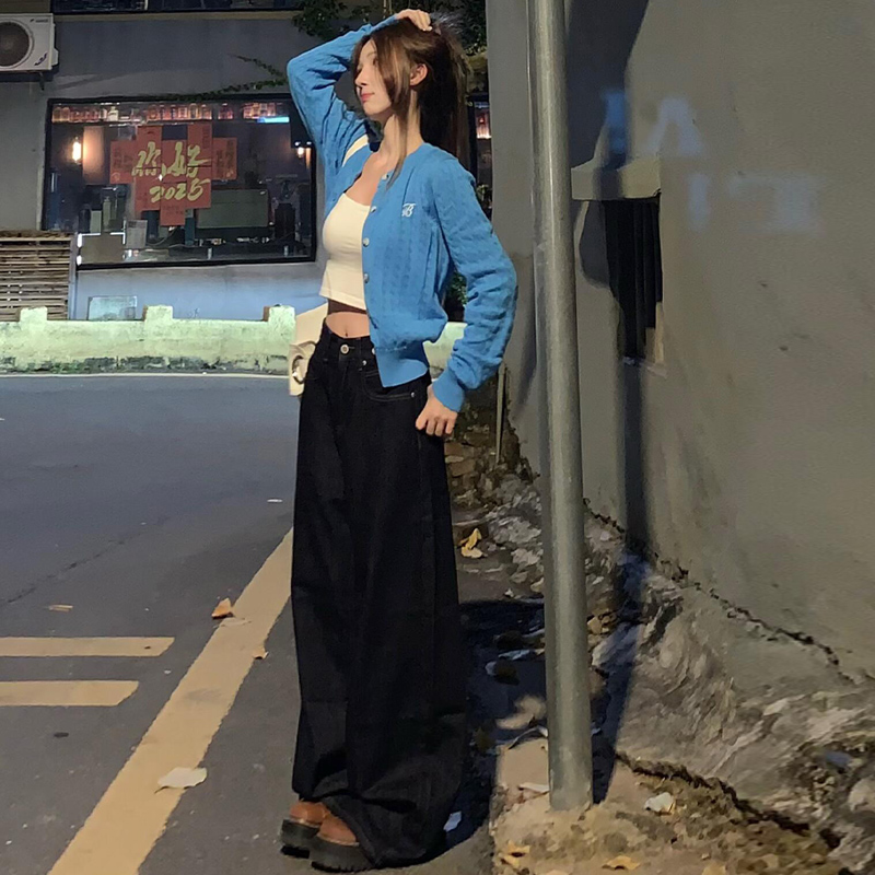 2025加绒高腰小个子复古宽松直筒裤 水泥灰垂感阔腿牛仔裤 女秋冬季