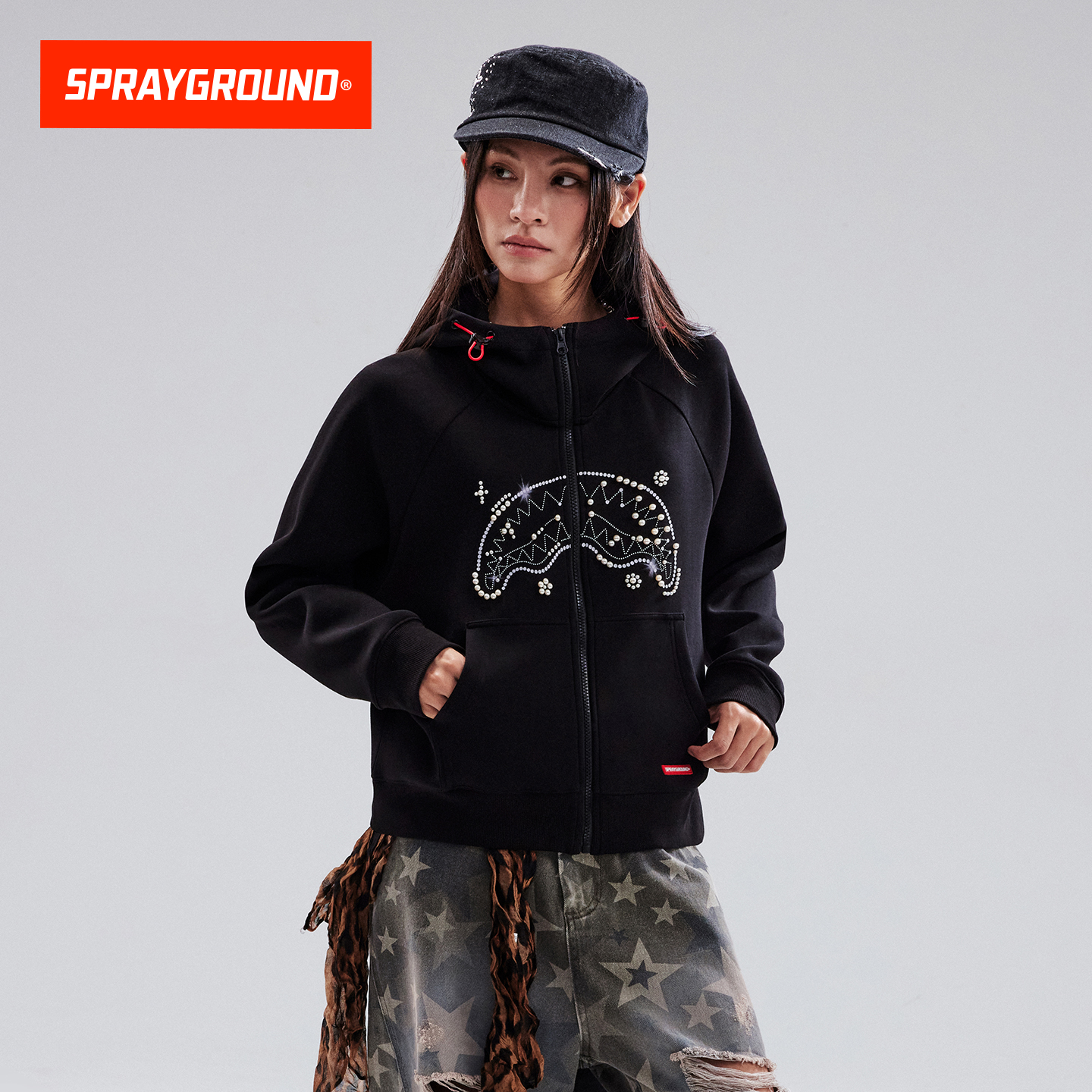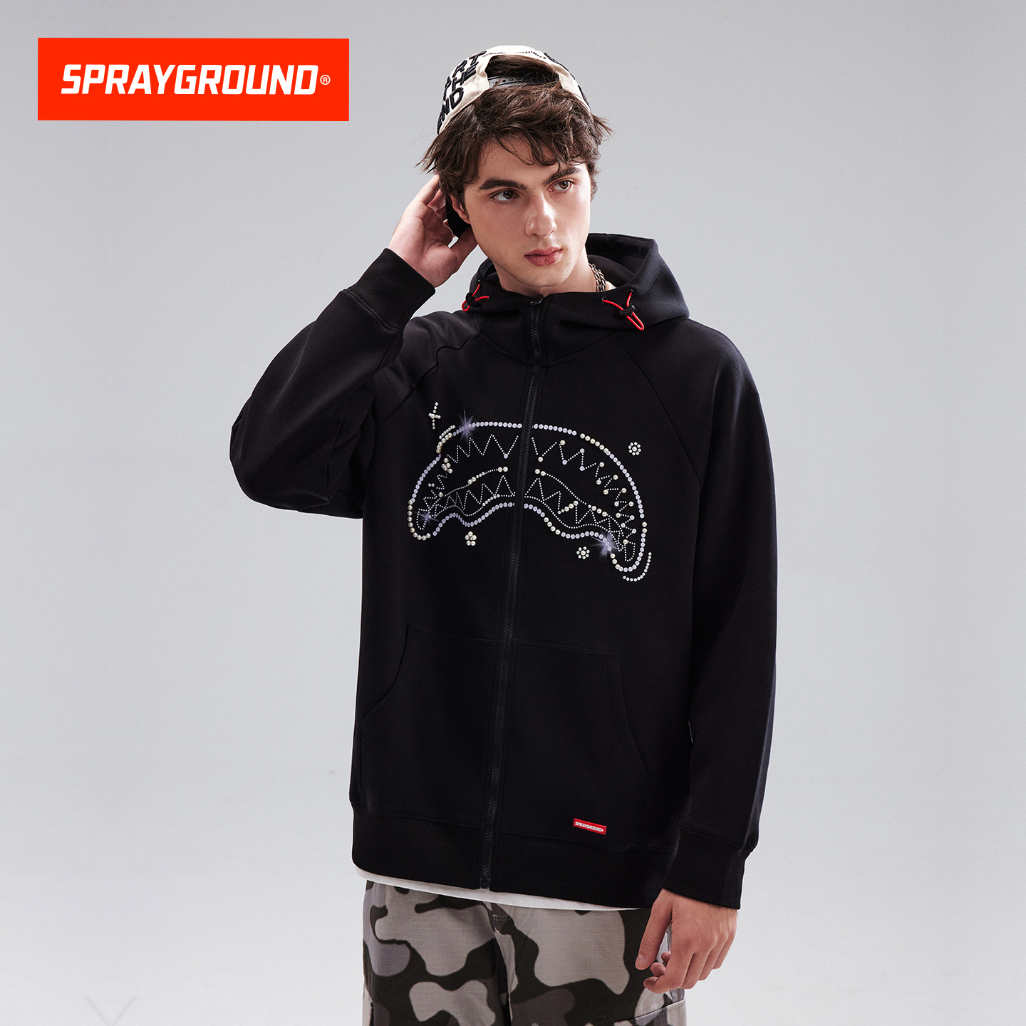 SprayGround鲨鱼嘴珍珠开衫 休闲宽松连帽拉链外套上衣 卫衣男女款