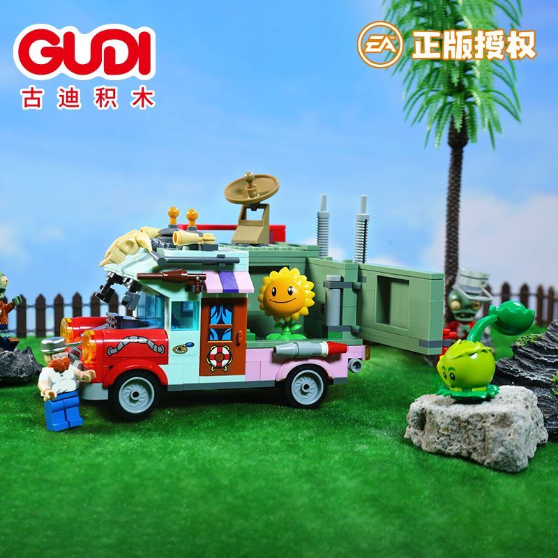 新乐新植物大战僵尸进击 玩具男孩模型手办 潘妮汽车场景积木套装