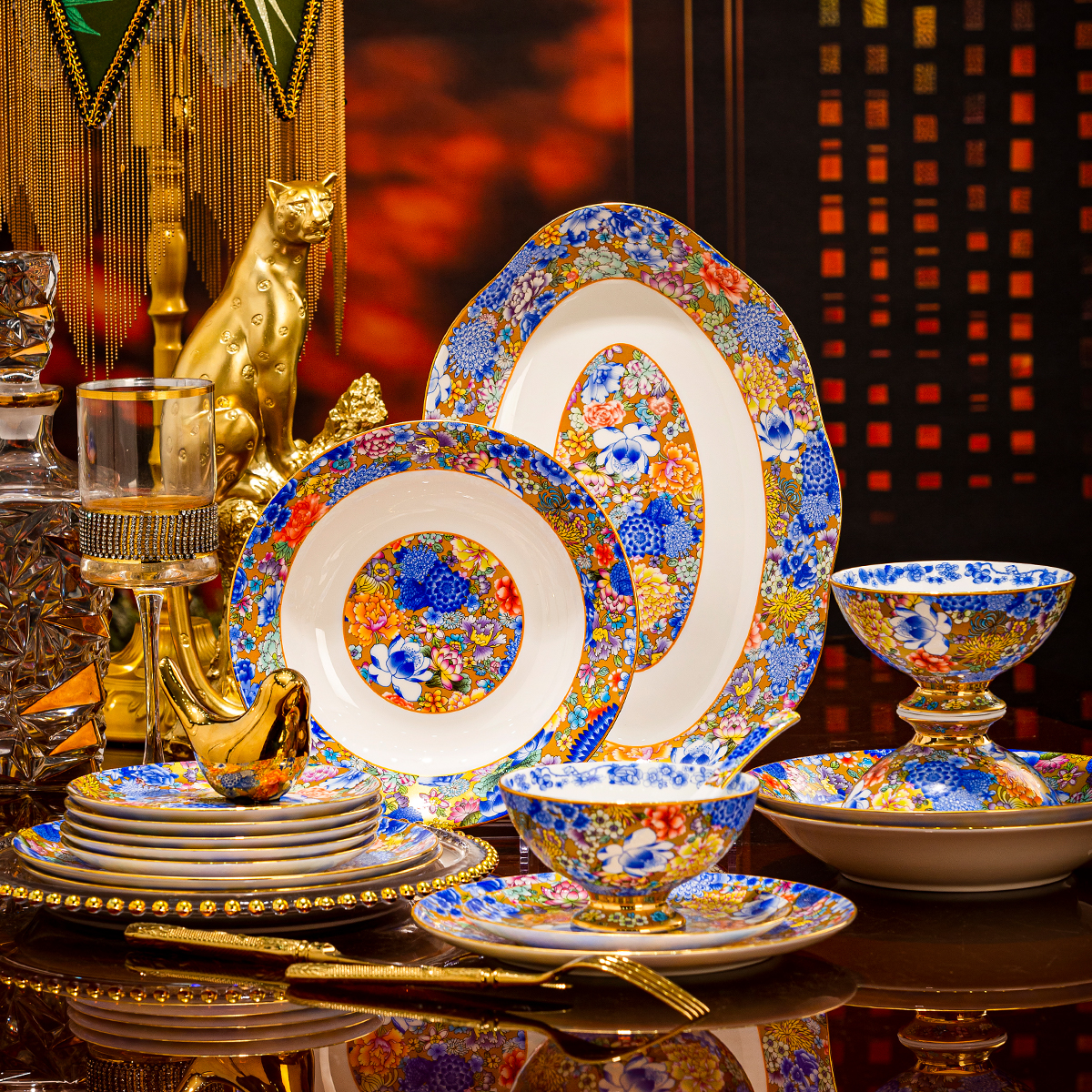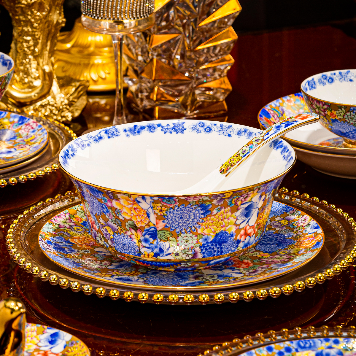 碗盘碟套装 餐具 家用碗筷陶瓷器吃饭碗盘子菜盘汤碗鱼盘中式