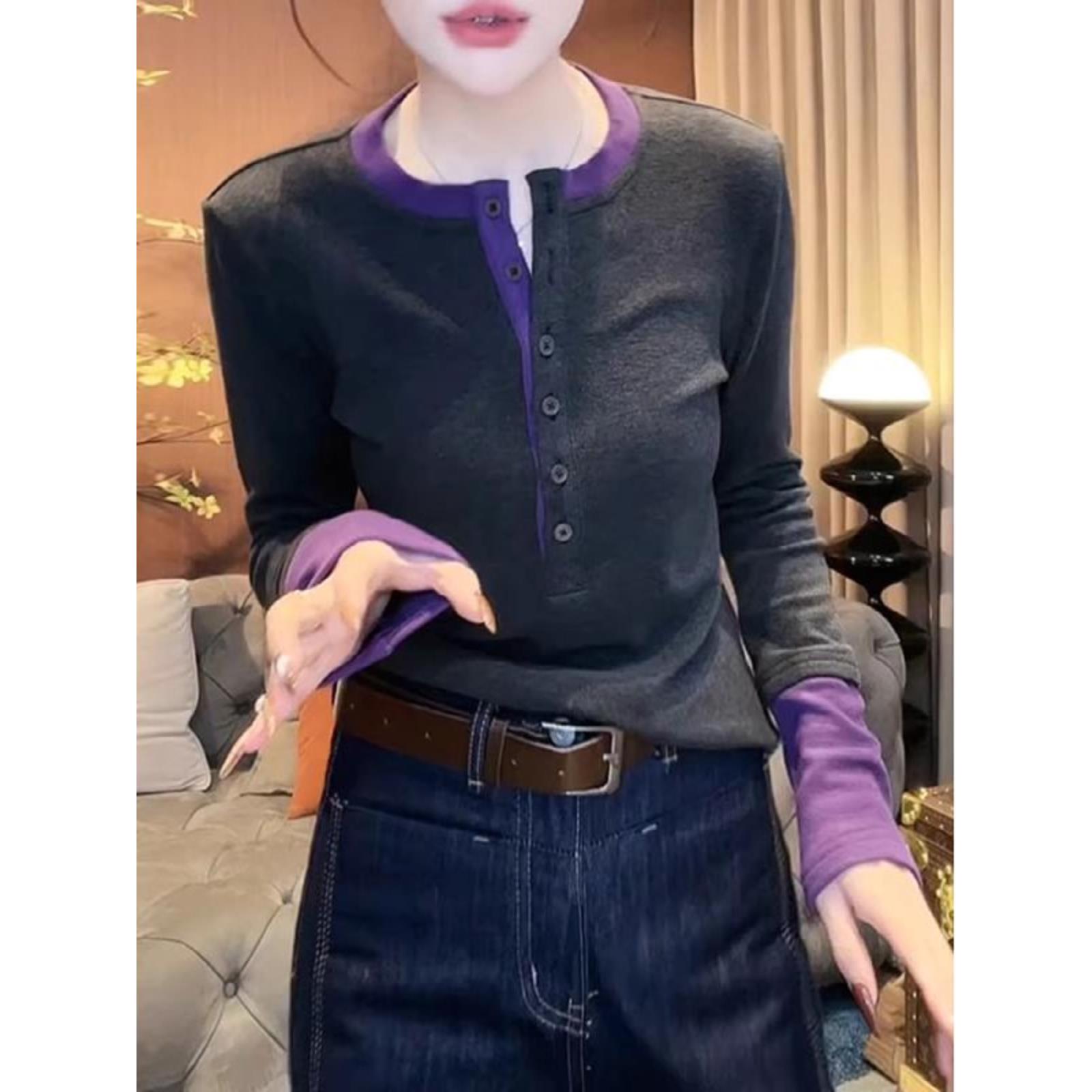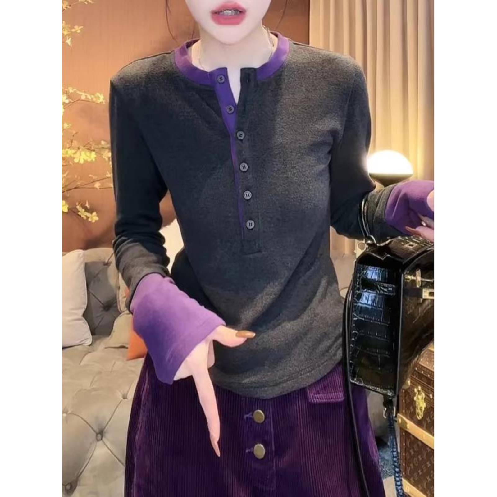 欧货上衣 胖mm显瘦内搭打底衫 高级感假两件半开领针织衫 女春秋大码