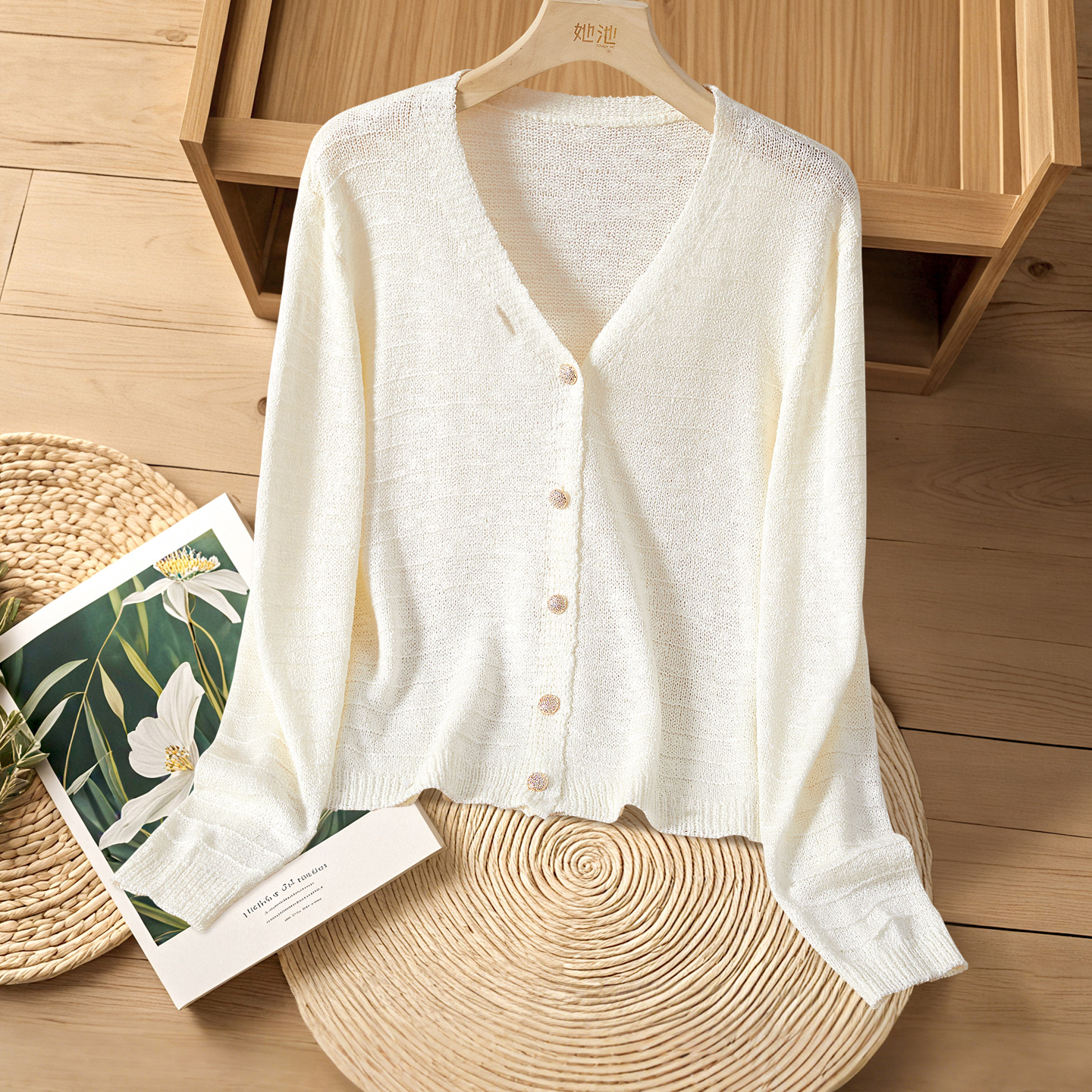 2025秋装 宽松款 新款 温柔风V领落肩长袖 上衣 女装 她池单排扣针织衫