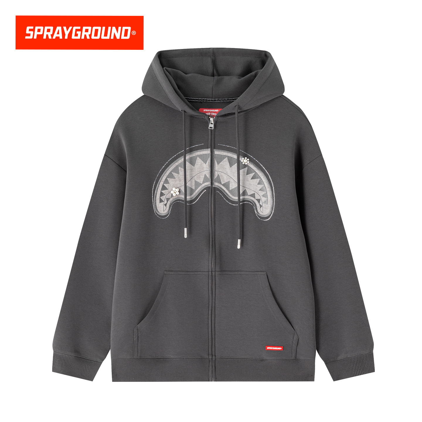 SprayGround25秋季 钉珠鲨鱼嘴拉链卫衣男情侣休闲宽松连帽外套潮