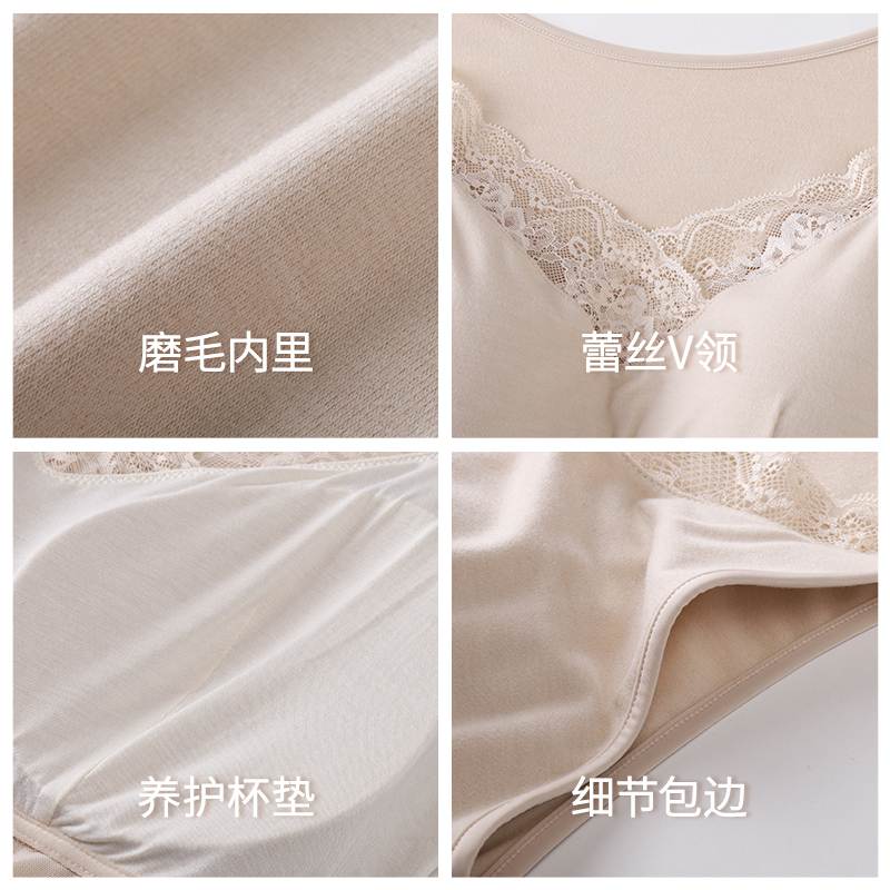 南极人德绒发热内衣无痕保暖背心女士加绒打底上衣带胸垫冬季 内搭
