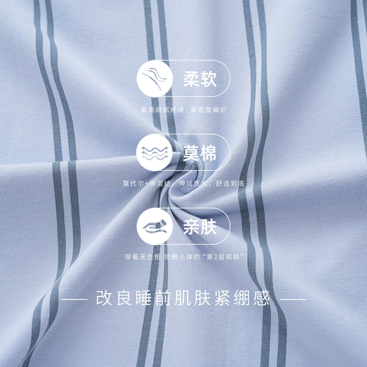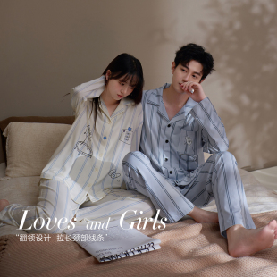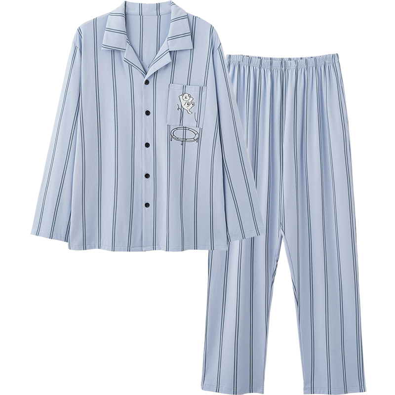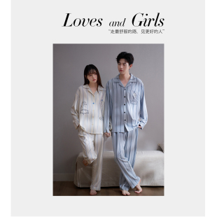 家居服 年轻人长袖 思莉太太情侣睡衣莫代尔棉女韩系条纹网红款 男士