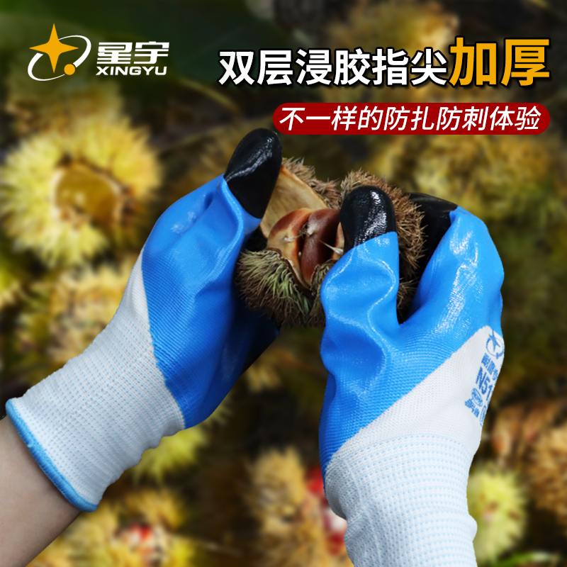 星宇摘板栗专用劳保手套耐磨防刺防水防扎透气工地干活灵活耐用