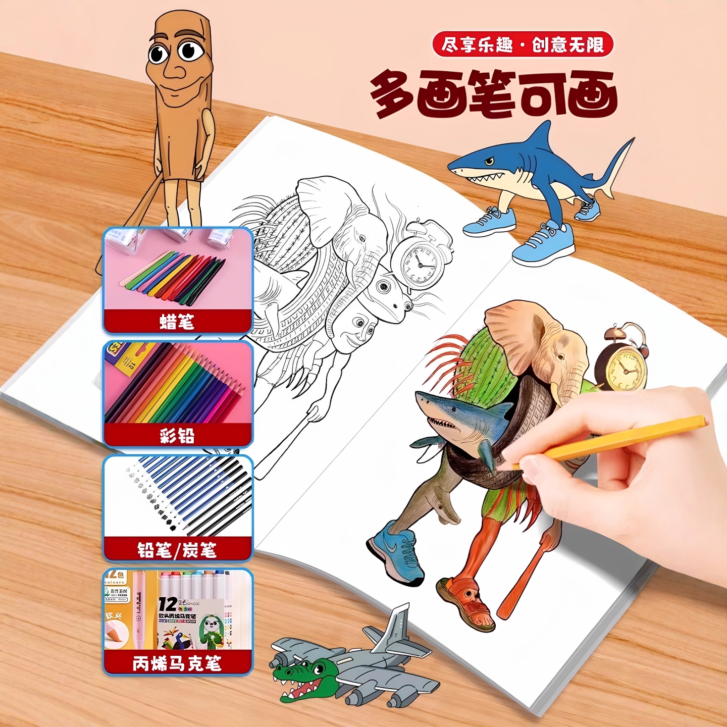 开学山海经ai美国书本描摹本漫画绘本画画涂鸦儿童涂色画本绘画本