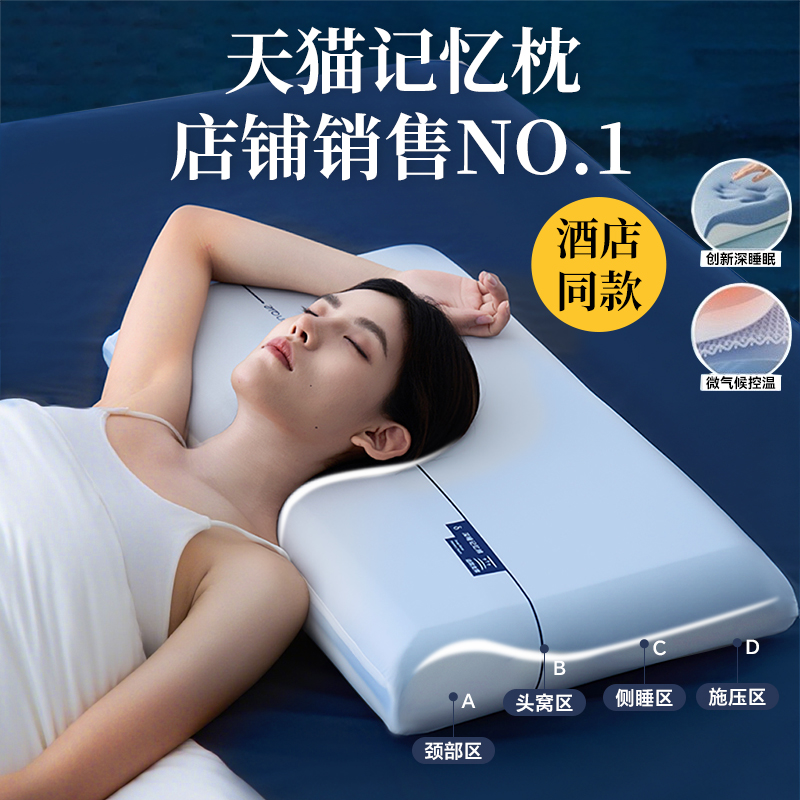 水星家纺记忆棉枕头芯慢回弹深睡枕A类抑菌成人学生宿舍呵护颈椎