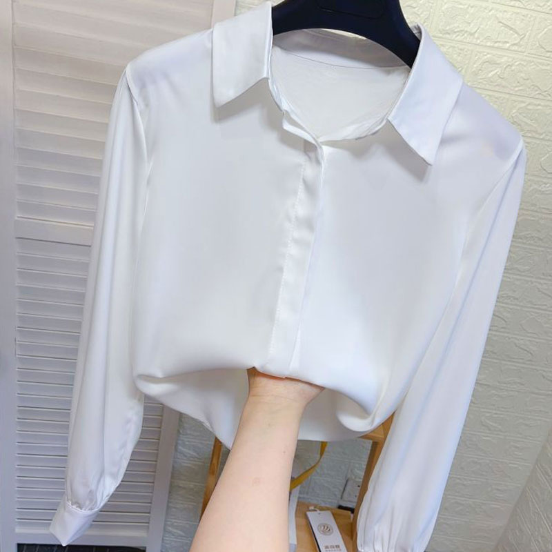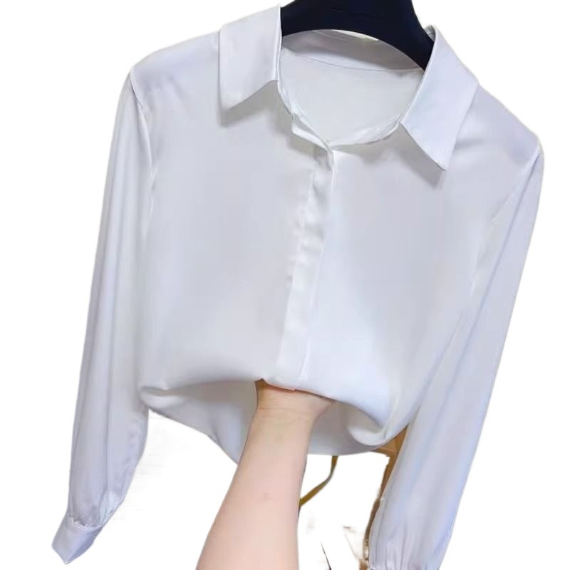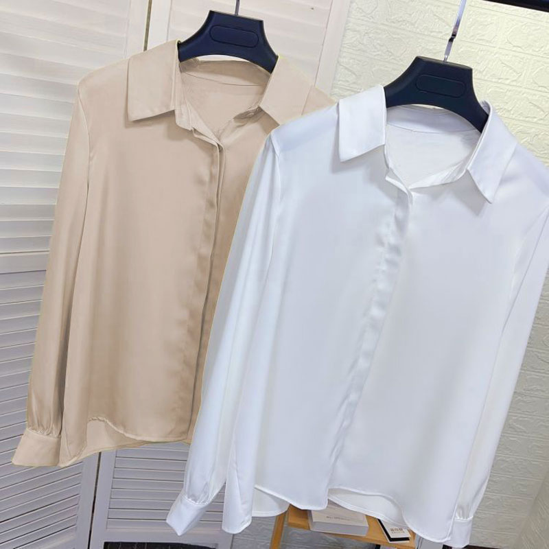 轻奢职业白色衬衫 通勤缎面面试正装 女春秋季 气质大码 上衣 长袖 法式