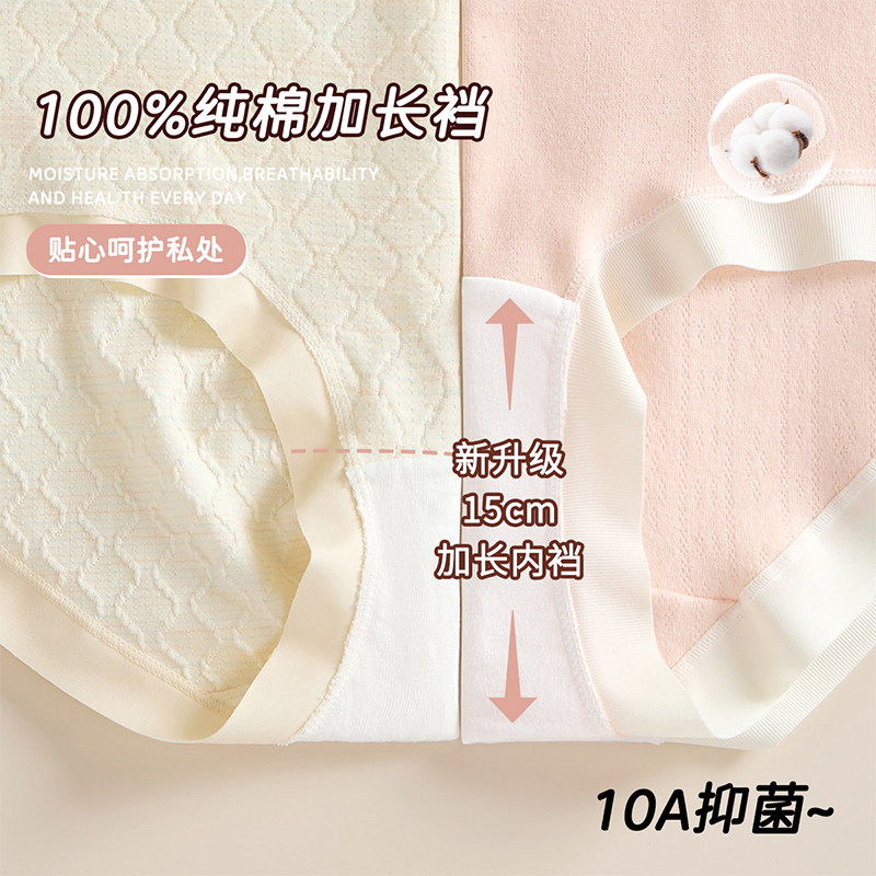 头三角女式 女士内裤 不卡裆柔软裤 纯棉抗菌高腰2025新款 女胖mm大码