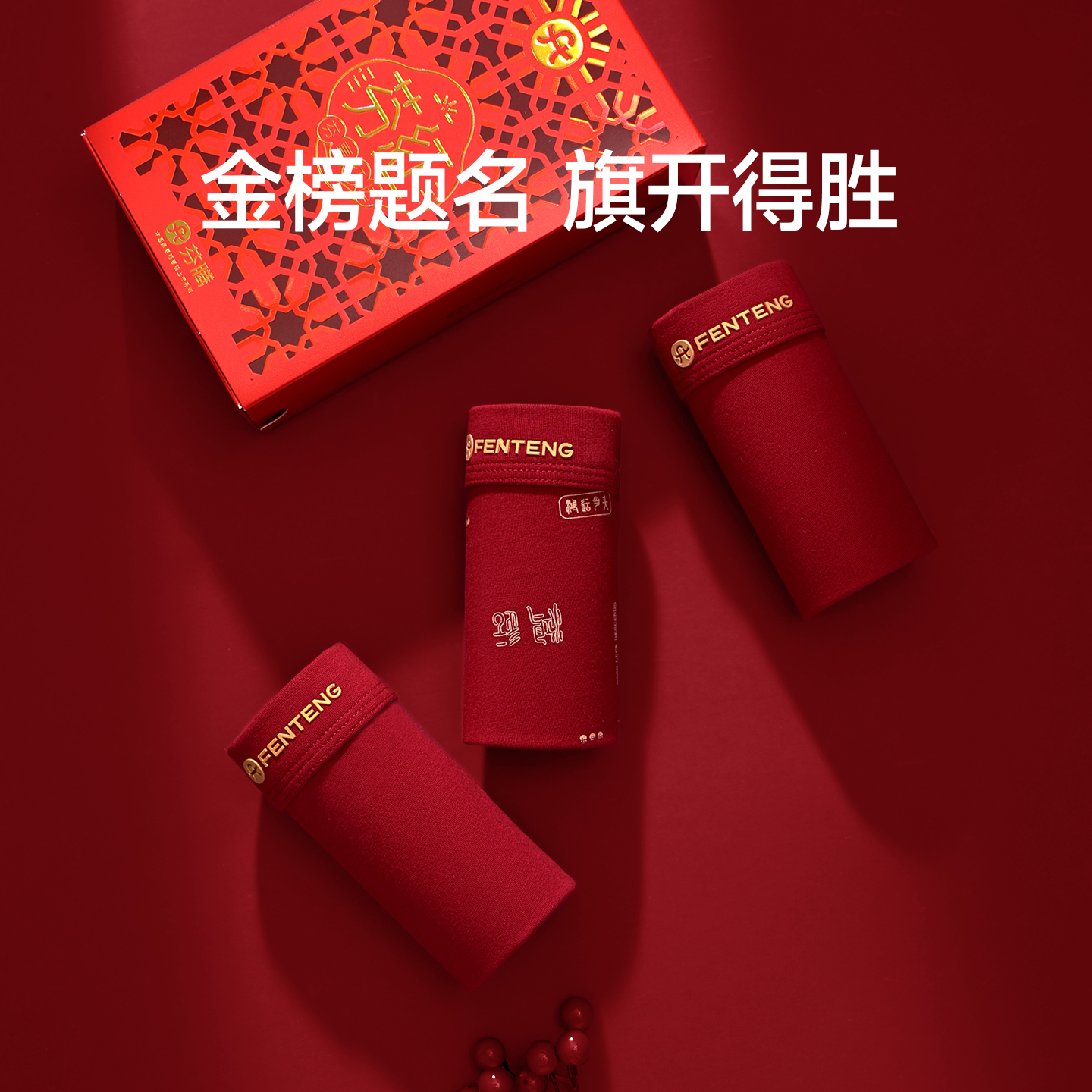 本命年红色全棉四角短裤 芬腾男士 青年男款 纯棉抗菌裆平角裤 头 内裤