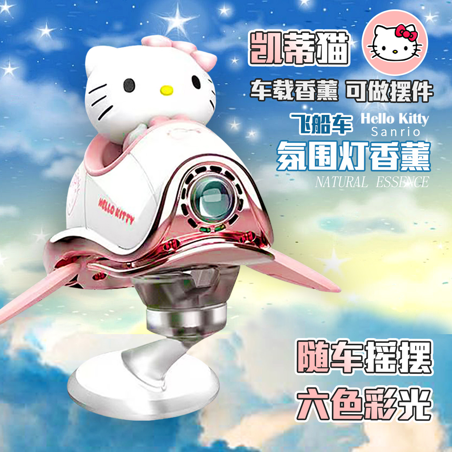 库洛米车载香薰汽车空调出风口飞机香水高档发光飞船装 饰摇摆摆件