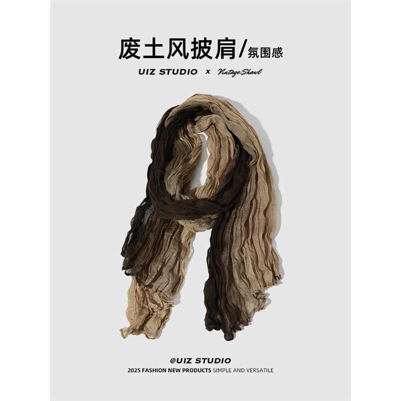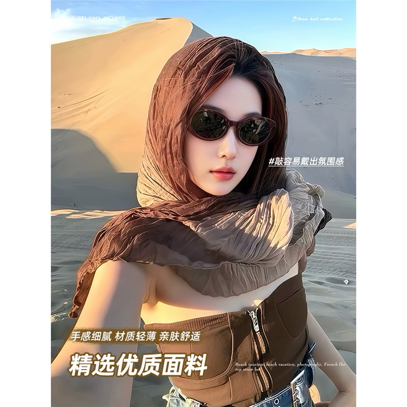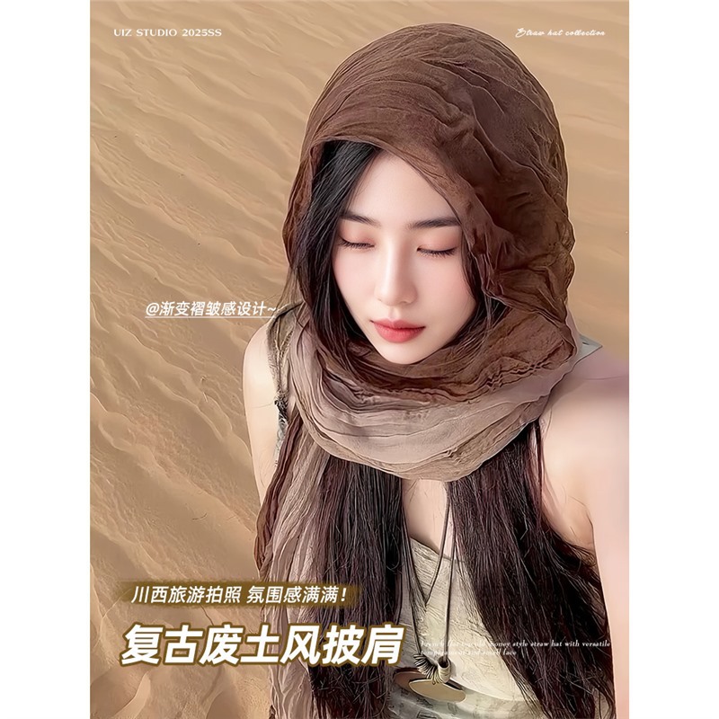 民族风围巾废土风亚麻褶皱渐变头巾沙漠丝巾辣妹围脖披肩潮旅游