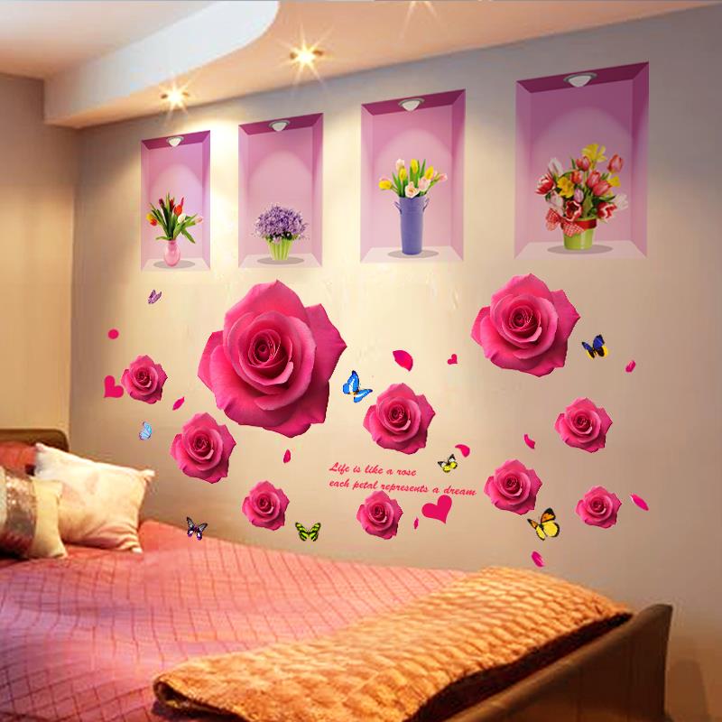 卧室墙贴纸贴画3D立体墙面背景墙装 饰贴花床头墙壁自粘墙纸墙画