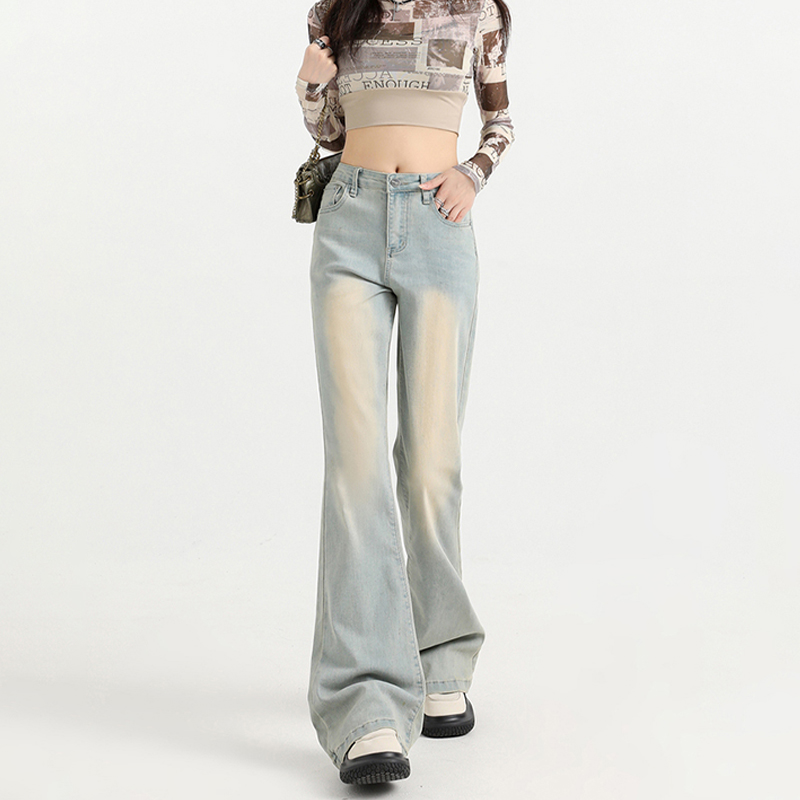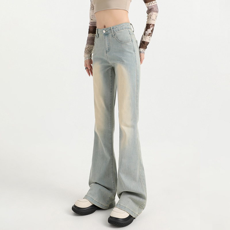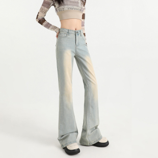 高腰显瘦弹力喇叭马蹄百搭裤 大码 新款 女2025春季 子 浅色微喇牛仔裤
