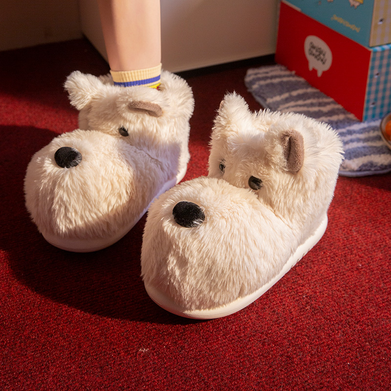月子室内家居家防滑厚底踩屎感毛毛绒保暖情侣男 秋冬季 棉拖鞋 女款